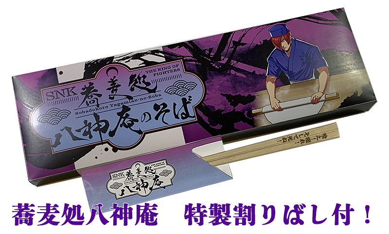 如今 SNK 官方與日本製麵公司信州油屋清右衛門合作,推出「蕎麥處 八神庵麵」(蕎麦処 八神庵のそば),參考售價為一盒日幣 864元,目前已開放預購,預計於 2020 年 1 月中旬發售。