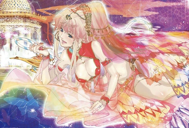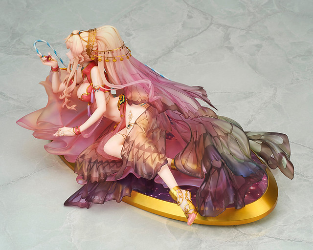 而大量披覆在身上的絲綢、薄紗等素材則透過透明零件呈現,讓人感受到輕盈的質感,並塗裝出美麗的漸層色彩,下半身部份更製作出了彷彿蝶翼的紋路,提昇雪露這套服裝的妖豔氛圍。