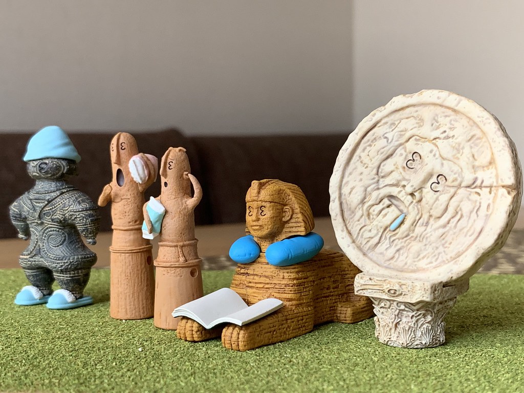 以「還沒從古老的遺跡中醒來」的文明古物為發想,將世界知名的古埃及的人面獅身「斯芬克斯」、日本古墳時代的「跳舞埴輪」(踊る埴輪)、1世紀古羅馬的「真理之口」(真実の口)與日本繩文時期的「遮光器土偶」四種古代遺跡,讓他們以剛起床、賴床、喥咕的搞笑姿態呈現!