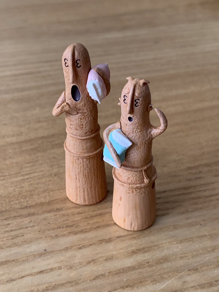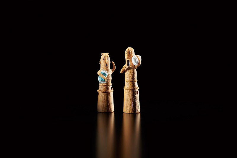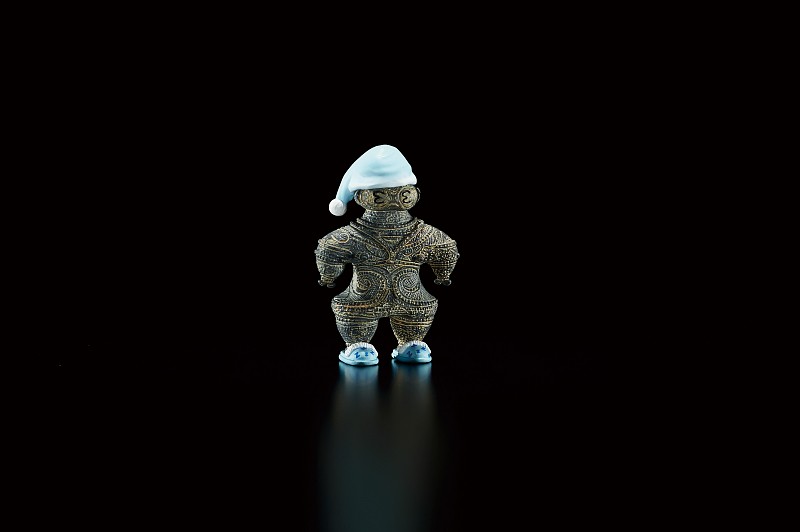 日本繩文時代的代表性出土文物,因為有如帶著遮光器(太陽眼鏡)的奇特大眼造型,也有不少跟外星人有關的都市傳說。一般認為土偶是女性形象,是宗教、咒術儀式的對象。這款穿上睡衣的土偶,可以將睡帽與拖鞋取下,有趣的是在拿下拖鞋時,可以連同腿部一起取下,還原東京國立博物館展出的遮光器土偶缺了一隻腿的模樣。