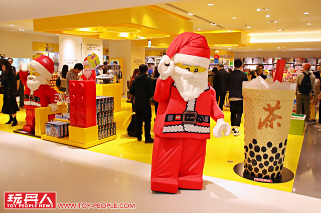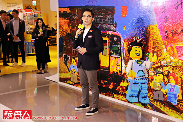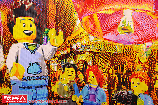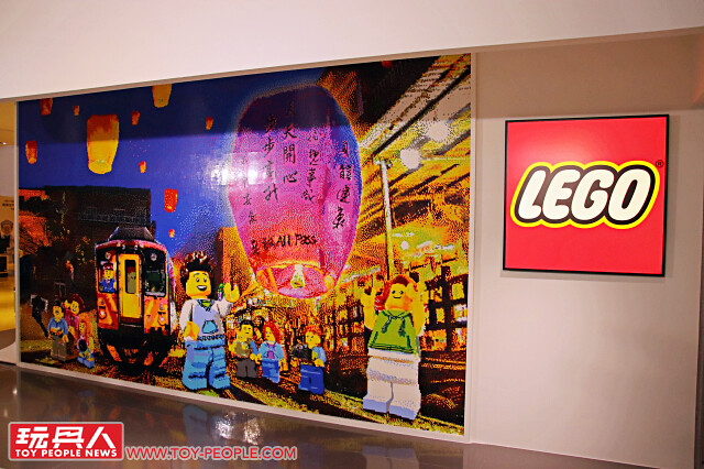 首先看到由台灣樂高認證大師「黃彥智」花上 20 萬顆積木、耗時兩個月所打造的平溪天燈馬賽克牆!以及極具台灣味的珍珠奶茶模型,就連冰塊都做了出來超讚!