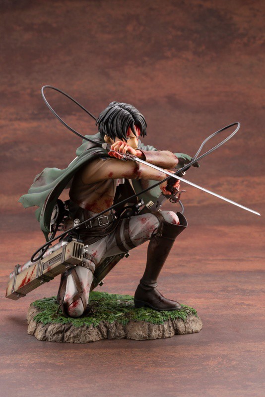 此次推出的「ARTFX J 里維 Fortitude ver.」以 1/7 比例製作,將兵長斬殺巨人後迅速替換刀片的瞬間立體化,飄動的頭髮、調查兵團披風、立體機動裝置的纜繩讓作品增添躍動感,全身上下更塗裝出大量的血跡、泥漬細節,讓人能夠充分想像在此之前斬裂無數後頸的歷戰姿態,銳利眼神更傳達了不敗給苦難、堅定貫徹意志的「不屈」精神。