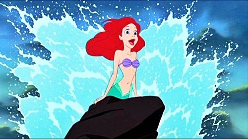 一旁的人魚尾巴、海星造型抱枕超可愛,愛麗兒壓著多個枕頭唱歌的樣貌超生動,而在下方摀住耳朵的雲妮露就有些失禮啦XDDD~