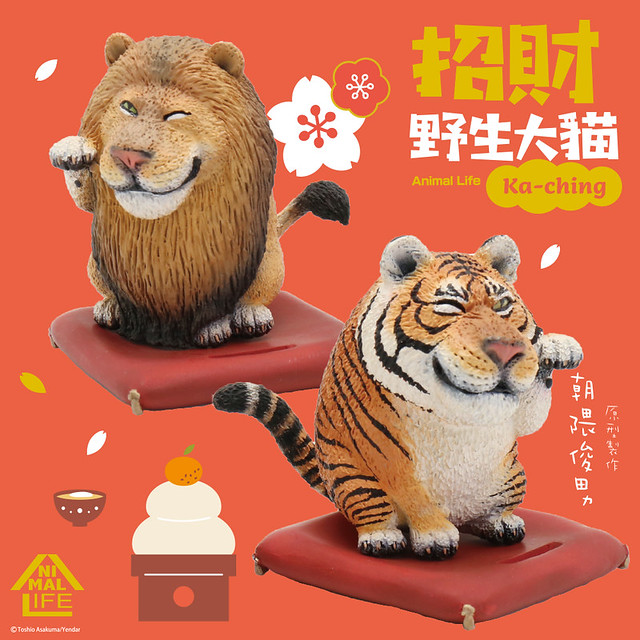 這可不是過年吃的肥嘟嘟,而是二頭身的獅子&老虎化身為招財貓,眨著眼睛為你招人招財招客招福氣! 底下附有座墊並有卡槽,可以卡上閃亮的錢幣為你帶來幸運喔!
