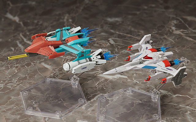 兩款戰鬥機模型都附有可動支柱的展示台座,另外大蜜蜂的戰鬥機在翅膀部分也有做特別的零件,假如有兩台一起的話,就可以重現當初遊戲中的合體(遊戲中有敵人會發射光束將飛機吸走,若將之擊落可以把飛機奪回,並且合體,攻擊力加倍)。