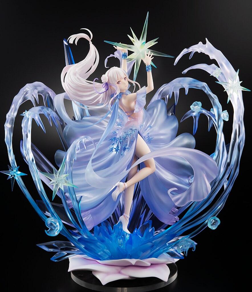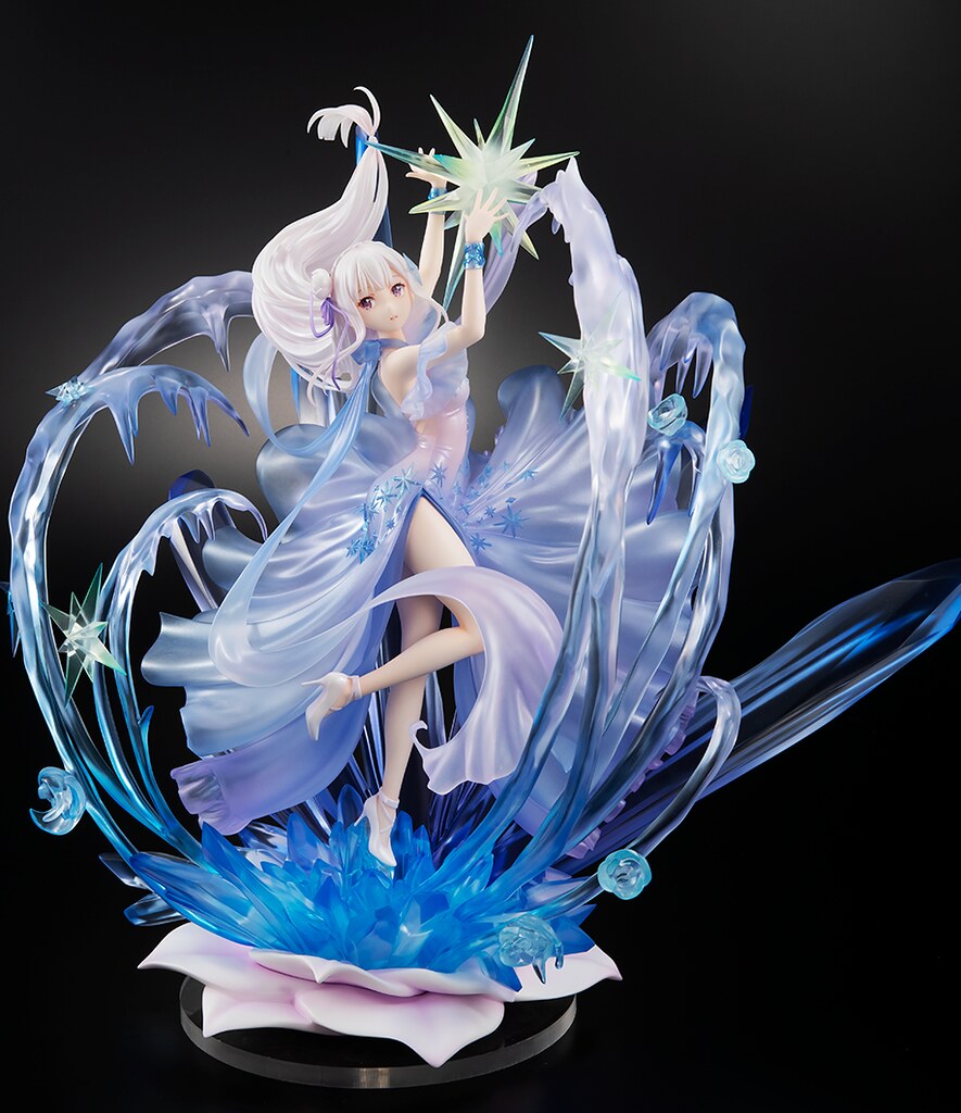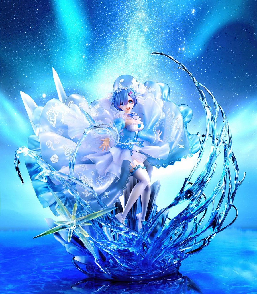 這次將愛蜜莉雅、雷姆身穿華麗水晶禮服的模樣立體化呈現,在禮服上使用透明材質,並以充滿魄力的透明特效件展現了美麗又夢幻的世界觀,相當令人驚艷。