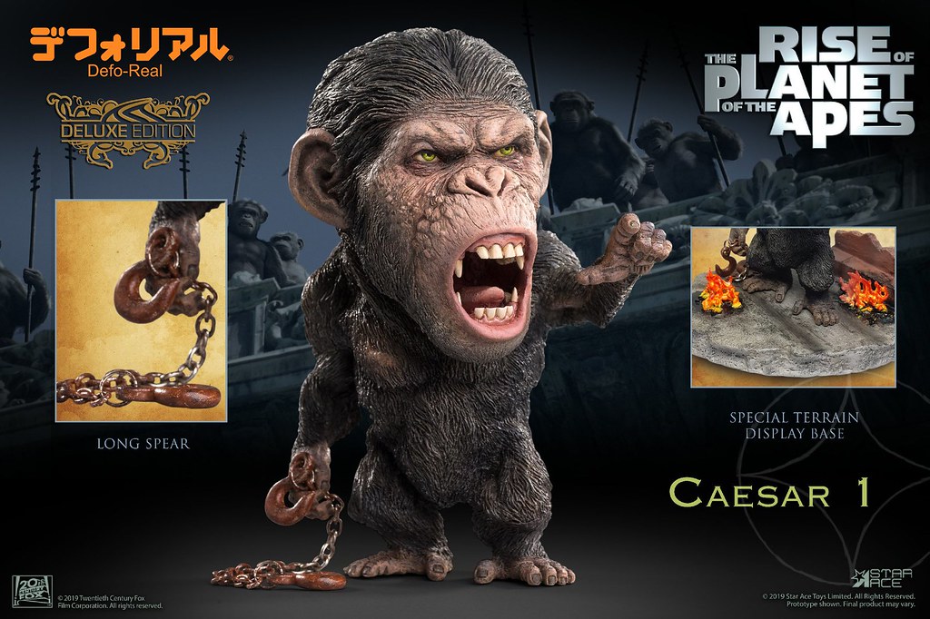 英國玩具品牌 Star Ace Toys 旗下融合了擬真細節與可愛Q版比例的「Defo-Real」系列日前發表了來自《猩球崛起》的猩猩主角新作「凱薩」(Caesar)!共推出鐵鍊與槍矛兩種造型,各自也都有搭配主題地台的豪華版,總共四款,預計將於 2020 年第二季發貨。