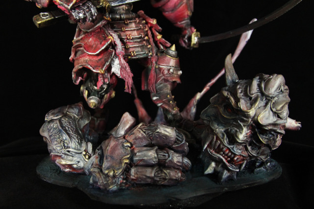 場景使用發泡劑當作本體結構,加上鋁箔與樹脂包覆後進行造型製作,利用場景中被斬殺的妖怪,呈現主角"血甲兜"比較正面的聯想