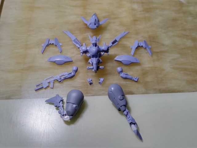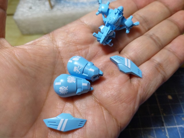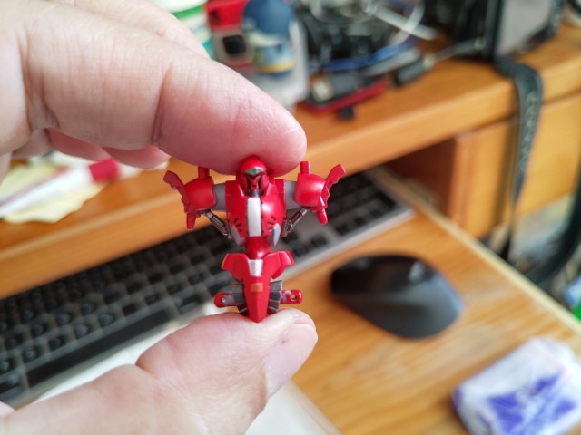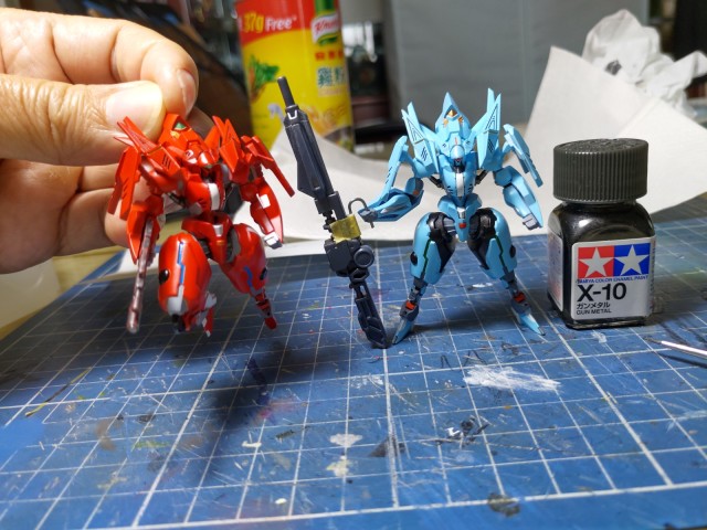今次一口氣製作了兩個機體,分別用上了紅色及藍色,一個是飛行形態,另一個是配合了 1/44 鋼彈武器的持槍形態。