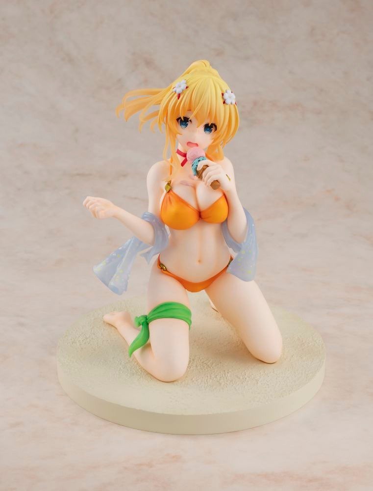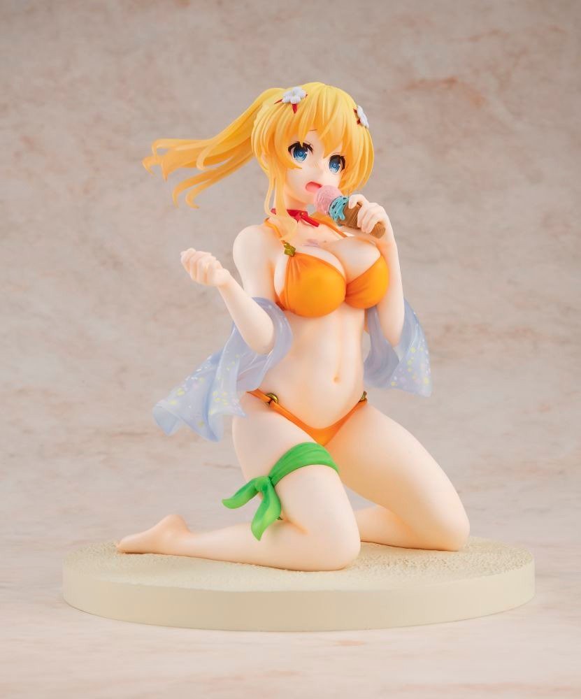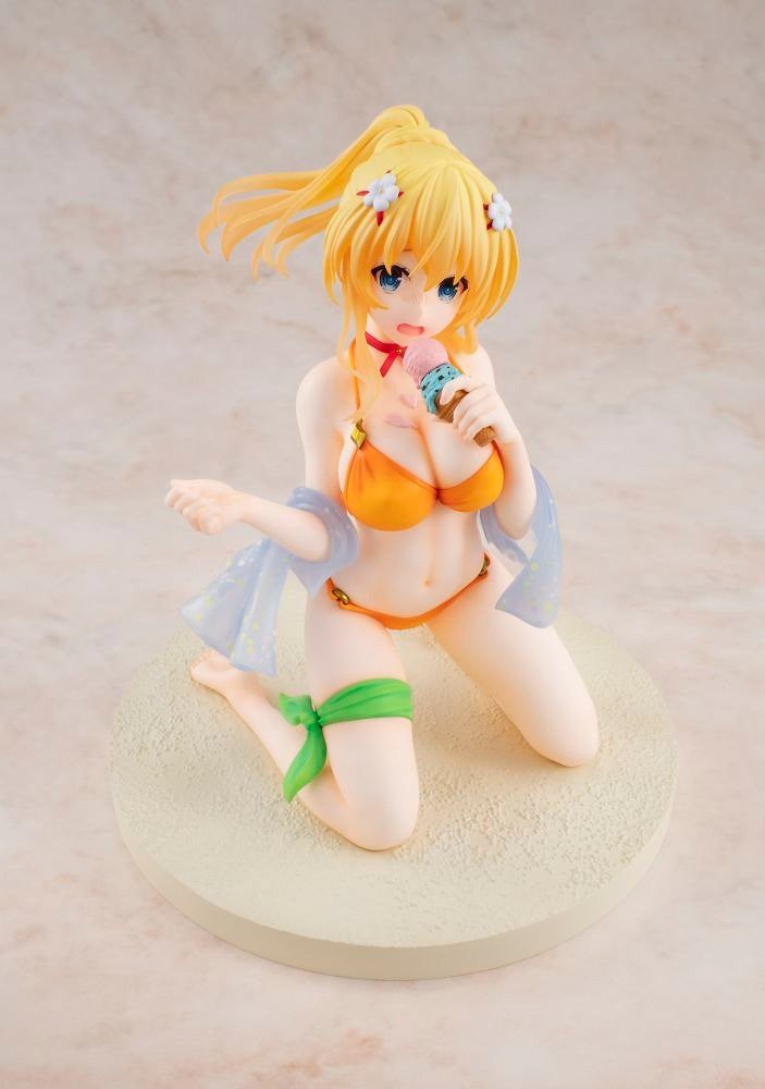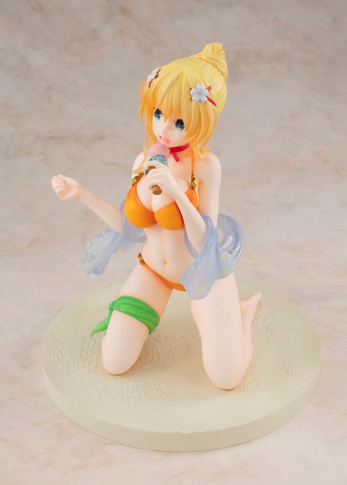 「達克妮絲 原作版泳裝Ver.」的 1/7 比例 PVC 模型,坐姿尺寸約為 165mm 高,以收錄於原作文庫本第14集,三嶋くろね繪製的插圖製成立體化模型。在泳裝造型下豐滿身材嶄露無遺,臉上害羞的表情,搭配手上融化滴下的冰淇淋,色氣中帶著可愛!