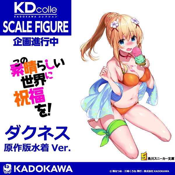 日本角川(KADOKAWA)旗下的玩具品牌「KDcolle(KADOKAWA Collection)」將推出《為美好的世界獻上祝福!》的新作:「達克妮絲 原作版泳裝Ver.」(ダクネス 原作版水着Ver.)的 1/7比例 PVC模型,參考售價為 16,500 日圓,預計將於 2020 年 03 月發售。