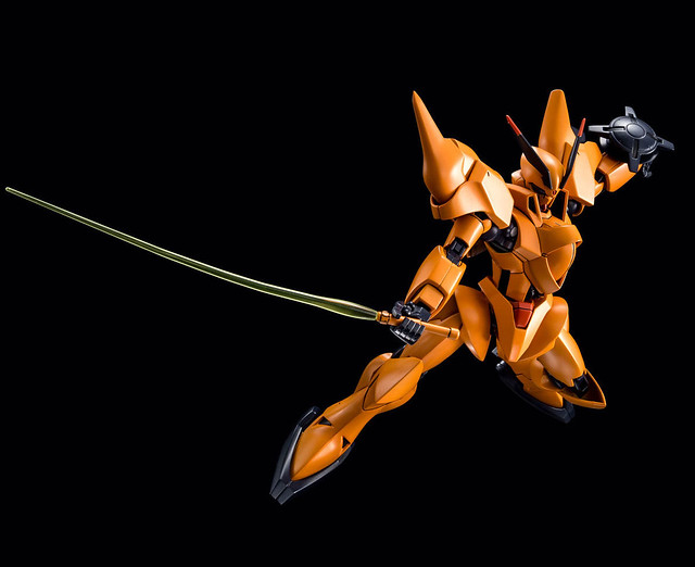「RE/100 夏柯」忠實將機體黃蜂般獨特的外型、優美的裝甲曲線立體化,套件不僅有高度可動性,極具特色的機構也大幅再現,包含肩部可展開內藏的 2 連光束槍、頭部能以替換零件方式重現兩種攝影機造型、光束軍刀可收納於大腿外側、光束部槍再現瞄具展開機構,用以飛行的光束螺旋槳則使用 PET 透明特效呈現,印有相當魄力的光束旋轉圖樣。