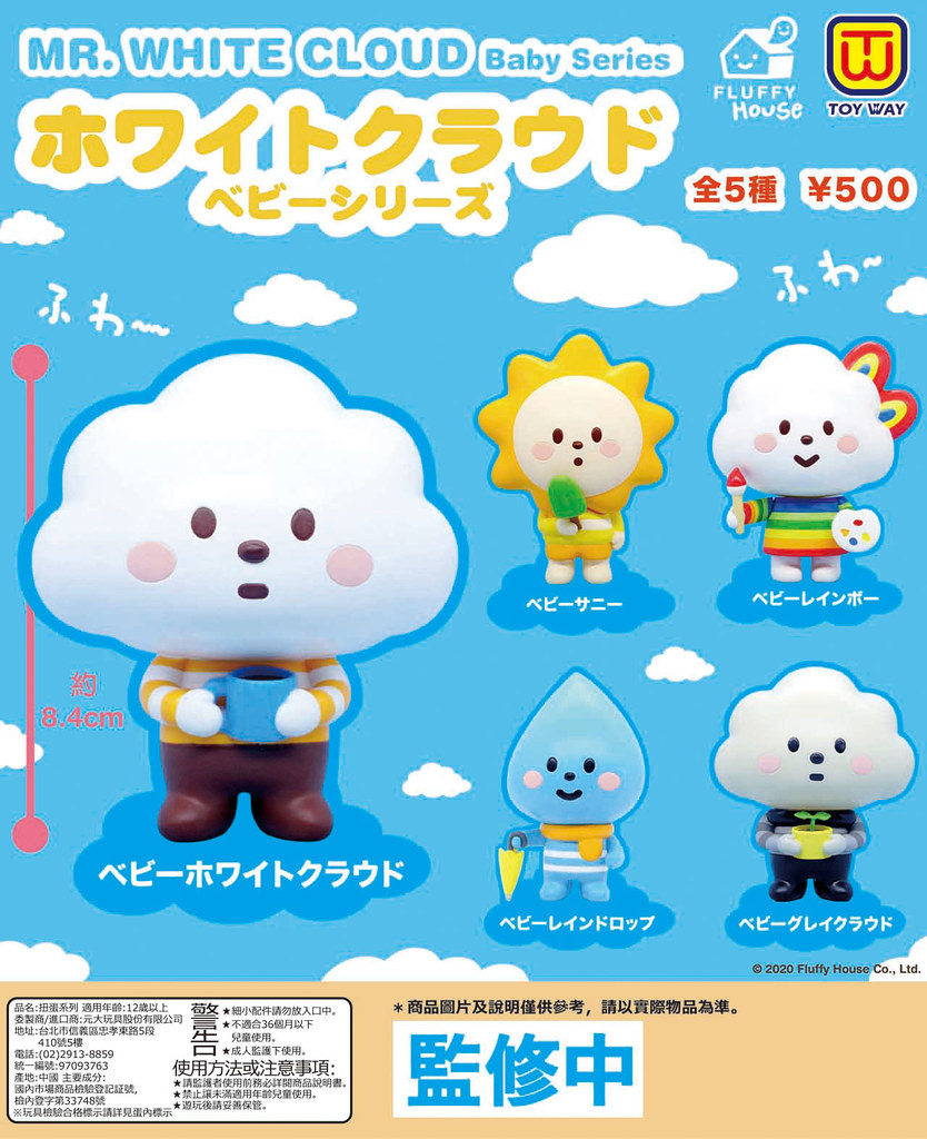 台灣 東匯玩具繼《小偷狗軍團》與《白爛貓變裝公仔》、《夜市百怪:百鬼霸豆妖》等充滿創意與趣味的轉蛋商品之後,這次又與香港設計團隊「Fluffy House」合作,推出新作:《白雲寶寶環保扭蛋 》啦!一共五種款式,售價為一轉 500 日幣,預計將在 2020 年 04 月療癒開轉~