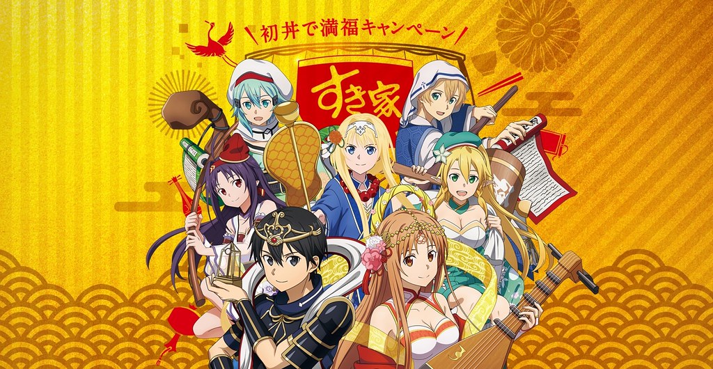 日本吉野家先前推出《精靈寶可夢》寶可盛活動受到超人氣好評,而同為牛丼連鎖餐廳的 Sukiya すき家,也將推出與《刀劍神域 SAO》的合作計劃,在新的一年,將角色們化作充滿吉祥的七福神版本登場!活動預計從 2020 年 1 月 15 日陸續展開,目前僅在日本推出,台灣尚未有相關消息。