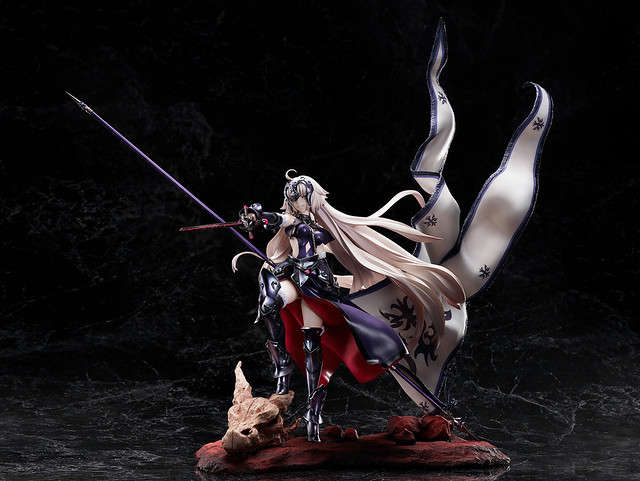 「Avenger/貞德〔Alter〕昏暗紫焰纏身的龍之魔女 1/7比例模型」由日本知名原型師石長櫻子(植物少女園)擔任原型製作,以遊戲中第三再臨的插畫為基礎製作,透過原創的姿勢重新詮釋踏上復仇之路的貞德〔Alter〕。五官有別於原畫露出更加扭曲、冷酷的神情,慘白而纖細的身軀與漆黑的鎧甲形成對比,雙手分別拿起黑劍與戰旗寶具「咆哮!我的憤怒(La・Grondement・Du・Haine)」、腳踏著龍頭骨的模樣極具魄力,十足展現心中的憎惡。