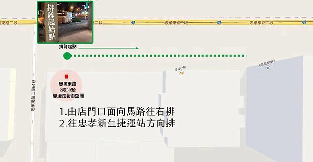 (1) 排隊位置如圖所示,考量大家安全,我們並不鼓勵夜排,但排隊期間若有相關爭議,將進行勸導,經勸導無效,則拍照存證且不給予發放號碼牌。