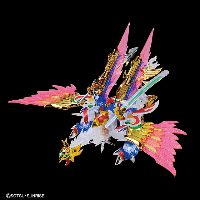 「LEGENDBB 飛驅鳥大將軍 [透彩版]」以一般版套件為基礎,除了將成形色替換為透彩版本外,原本就閃閃發光的電鍍零件更為增量,這次連討魔八紘劍、腳掌的爪都升級為銀色電鍍,還附上了與父親新世大將軍相同規格的戰武面、銀色電鍍的光鳳劍,商品內容更加豪華。