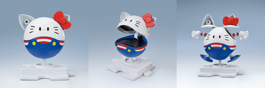 BANDAI SPIRITS 除了三款HELLO KITTY x RX-78-2 GUNDAM 模型,還將推出 HELLO KITTY 與鋼彈系列的吉祥物「哈囉(ハロ)」的合作款!哈囉新規造形的貓耳朵與 KITTY貓 毫無違和的融合,綁上KITTY貓招牌的紅蝴蝶結,並有貓鬍鬚和黃鼻子的貼紙~整體造型相當可愛!