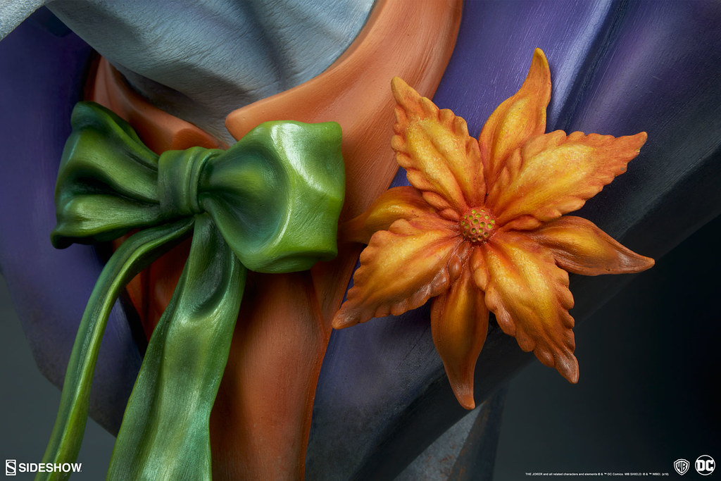 服裝部分是以橘色襯衫搭配紫色套裝,並以綠色領蝴蝶結作點綴,藉著精彩的造型與上色,讓領結有著逼真的皺褶與飄逸感,胸像整體的各處細節都十分精彩,家裡還有空間的玩具人不仿帶一尊回家擺!超帥啊~!