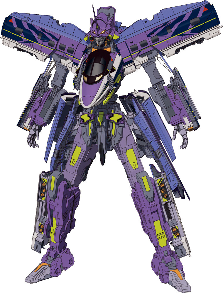 「Shinkalion 500 TYPE EVA」的原型來自 2015 年《福音戰士》與日本山陽新幹線合作的彩繪列車「500 TYPE EVA」。2017 年,由 TAKARA TOMY 推出的《新幹線變形機器人》玩具企劃將此列車加入陣容。在設定上是「NERV」與「新幹線超進化研究所」共同開發的新幹線變形機器人,外型以 EVA 初號機為藍本,能從四節列車的「新幹線形態」變形為巨大機人「Shinkalion 500 TYPE EVA」,甚至還具有酷似暴走狀態、讓整體能力更為提昇的「第二形態」。不僅推出了變形玩具,後來更在動畫版《新幹線變形機器人》31話、劇場版《新幹線變形機器人 來自未來的神速 ALFA-X》中登場。