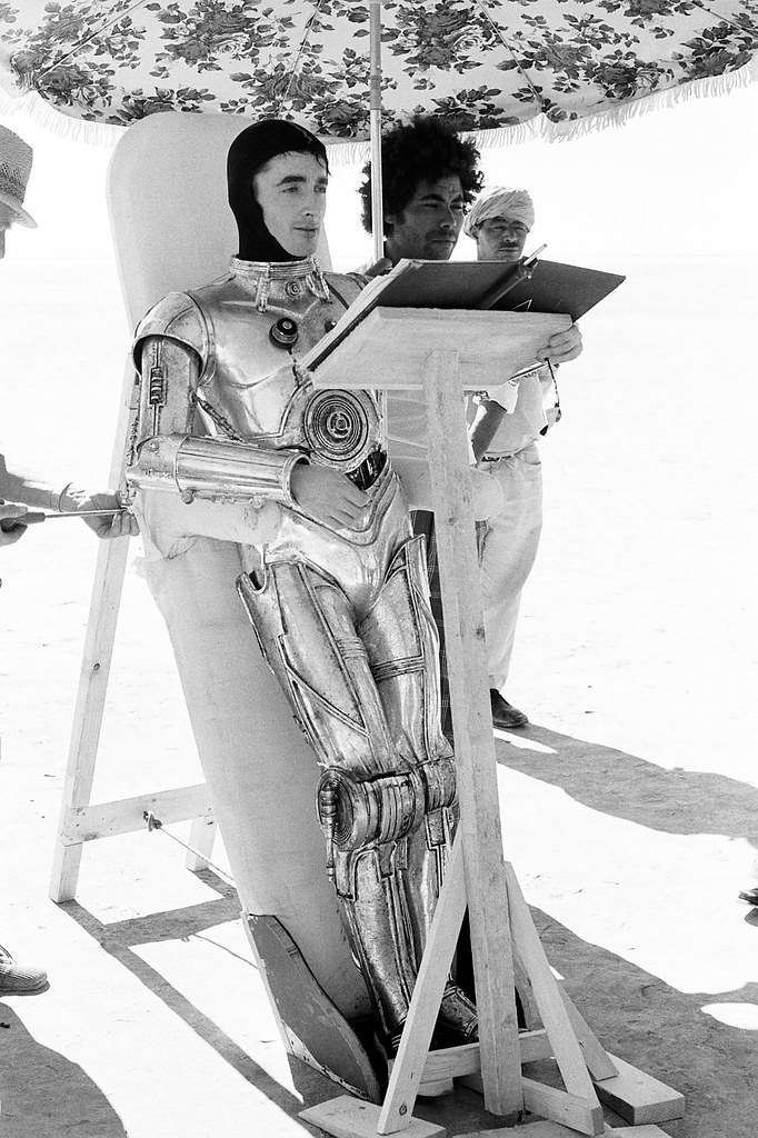 這是片場的每日例行公事,因此這一整天裡,丹尼爾都得維持這個僵直姿勢沒辦法休息──他甚至無法坐下。38 年後的《STAR WARS:原力覺醒》時,特效組為丹尼爾扮裝 C-3PO 的時間,僅有 6 秒鐘。哈雷路亞,丹尼爾甚至可以坐下來了!