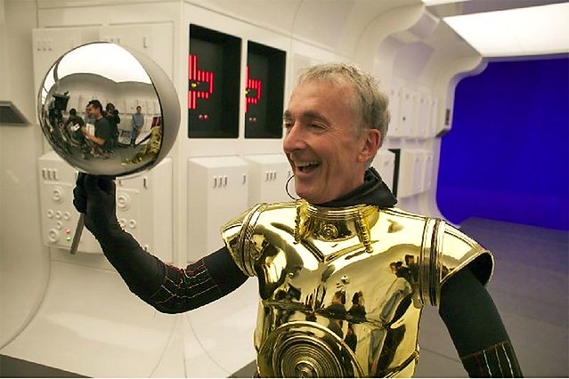丹尼爾從小就想成為演員,而且他也順利進入了戲劇學校,也有了舞台經驗。從哪方面來說,把他塞進金色機器人外裝裡,無法露臉、肢體動作受限、台詞還得念得像機器人一般、連用聲音演戲都不行,這實在是對專業演員的一種污辱。等等,我們還沒提到「塞進金色機器人外裝」這件事:我們看到的金色 C-3PO ,其實是 19 片金色零件,團隊必須先花兩個小時,把這些零件裝在一動也不動的丹尼爾身上。