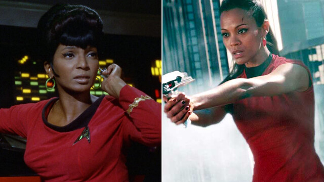 ▼ Nichelle Nichols 所飾演的Nyota Uhura;後來2009年J·J·亞伯拉罕執導的電影版本由Zoe Saldana(柔伊·莎達娜)擔任。(她後來在《星際異攻隊》中飾演薩諾斯的養女、女殺手 - 葛摩菈,以及《阿凡達》的納美人公主奈蒂莉)