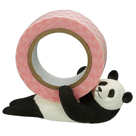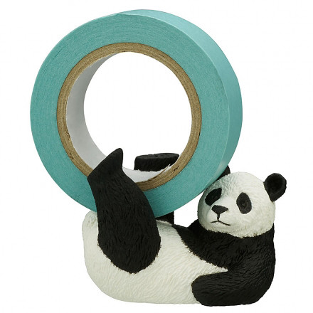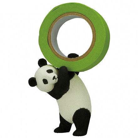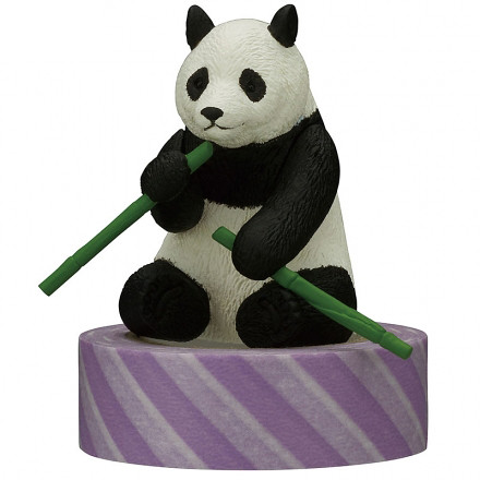 「熊貓 紙膠帶台」約為 6.5 公分的尺寸,以熊貓為主角,設計五款熊貓與膠帶互動的姿勢,以放置普遍使用的 15mm 膠帶,包含高高把膠帶抬起(よっこらせ!)、大口吃著竹子(笹、おいしいねぇ)、使用足技把膠帶踢高高(足枝)與緊緊抱著膠帶(ごろ〜ん、マステが好き!)等姿勢,讓膠帶台也能充滿趣味造型。