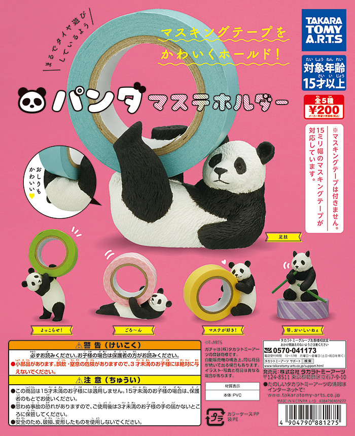 日本TAKARA TOMY 公司旗下玩具品牌「T-ARTS」將推出實用又可愛的功能性轉蛋:「熊貓 紙膠帶台」(パンダマステホルダー),一共有五種款式,一轉售價為 200 日幣,於 2020 年 1 月下旬發售!