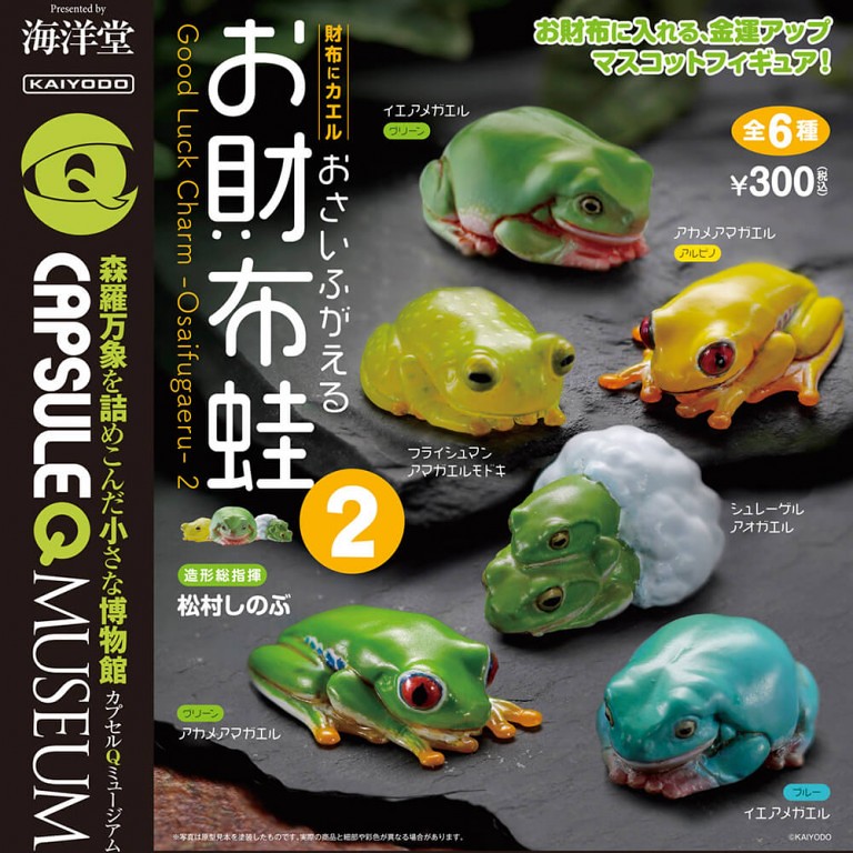 日本玩具公司 海洋堂,旗下專門製作精緻縮小轉蛋尺寸的《膠囊Q博物館》(カプセルQミュージアム)系列,將推出日本吉祥物「財布蛙 第二彈」(財布にカエル「お財布蛙2」)轉蛋,一共六種款式,一轉售價日幣 300 元,於 2020 年 1 月販售。