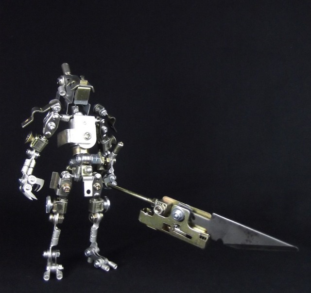 Shimodaira Daisuke makes a model using industrial and model technique, and not only the outer shape but also the inner structure. The parts to be used are metal parts picked up from the pile of scrap materials, and the joints can be moved by connecting screws and nuts, allowing you to pose freely.