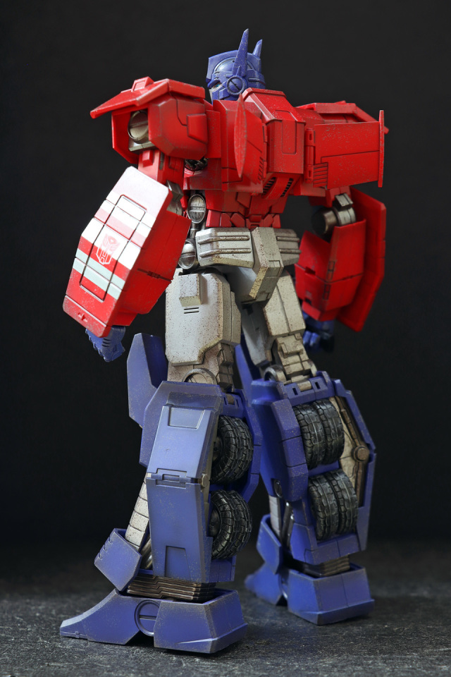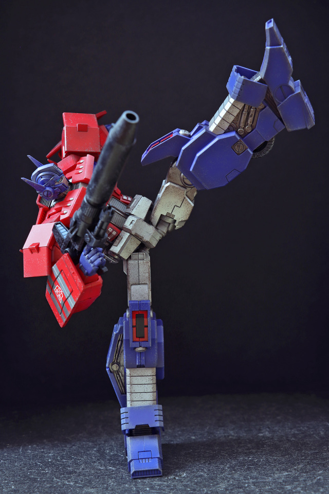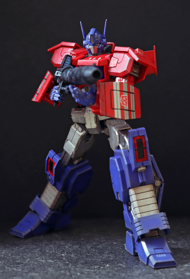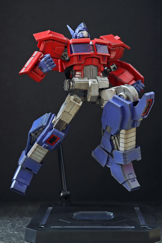 優點方面,外型根據 IDW 版本打造,故毋須擔心外型問題;細節及情報量平均。本體紅色及藍色只作消光處理,但作舊化後卻給人一個截然不同的感覺!QC 很好,另外其可動性很高,腰前甲可作升降及膝關節的連動亦是此套件的一大賣點。還有五百塊這價錢換來這級數的成品我個人覺得超值,對沒空組模型的上班族更是一個福言!