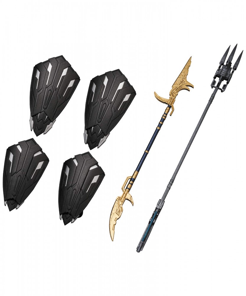 雖然是在《無限之戰》、《終局之戰》掀起的全球英雄熱過了許久才宣佈推出,但這款「MAFEX 美國隊長 無限之戰 Ver.」的確讓人眼睛為之一亮,身形比例跟頭雕的還原頗為出色,服裝再現了電影裡的設定並施以寫實的舊化,頭雕共有普通、咬牙兩種,咬牙頭雕在重現對戰場景時張力十足!武器配件附屬兩枚銳利的瓦干達爪盾、亡刃(Corvus Glaive)的雙頭刀葉長矛,以及暗夜比鄰星(Proxima Midnight)的三叉長矛,實在讓人興奮!