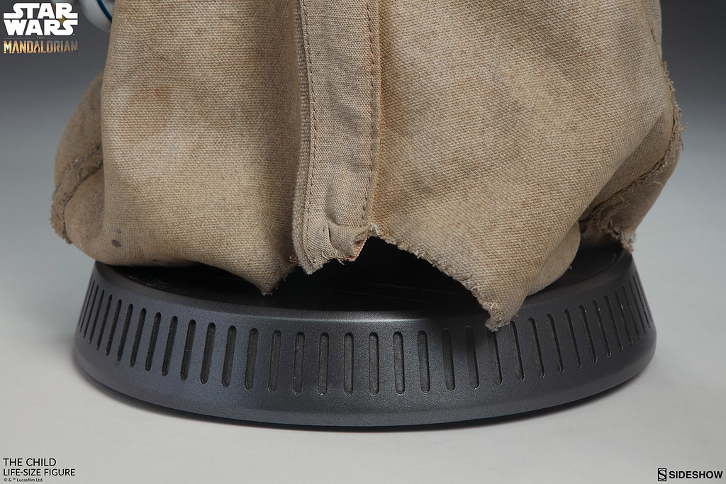 這款 1:1 比例的尤達寶寶採用塑料、樹脂......等材料製成,服裝也是以經過舊化處理的真實布料縫製,高約 41.9 公分(含底座),細緻地形塑出牠長長的尖耳朵與水汪汪大眼,極具生物感的綠色皮膚、斑點,以及耳朵內部的紅潤色澤皆以高水準的塗裝技法呈現,除了頭頂稀疏的細毛之外,雙手還有滑嫩嫩的視覺效果,越看越想摸:D~底座部分是根據曼達洛人飛船裡的場景為題製作,值得一提的是尤達寶寶手上還抓著牠最愛的操縱桿旋鈕喔,超Q!