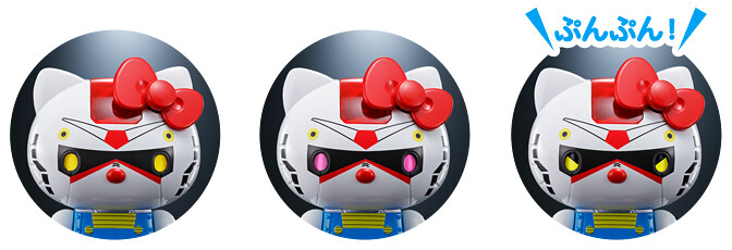 「超合金 RX-78-2 鋼彈★ HELLO KITTY」以RX-78-2 鋼彈為設計,將 Kitty 貓換上RX-78-2配色,並配有化身為阿姆羅的 Kitty貓 minifigure,除了可以擺放在身旁,也能置入頭部的駕駛艙中。按下駕駛艙開關可以變換 3 種模式的眼睛變化效果。