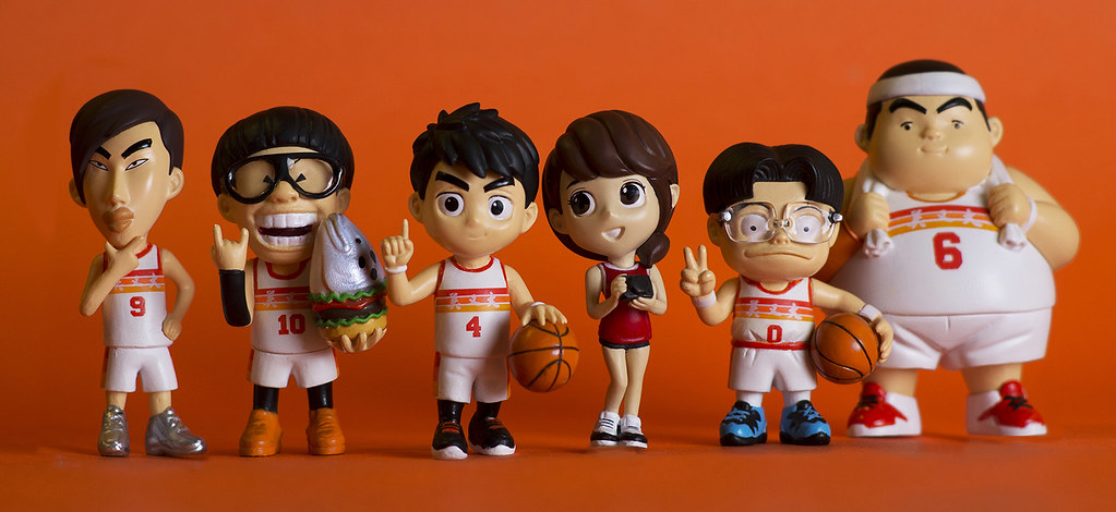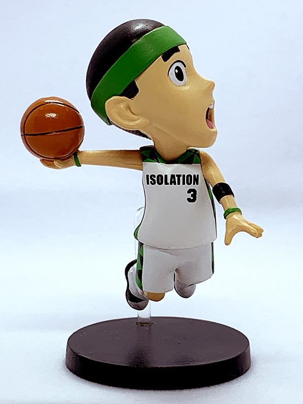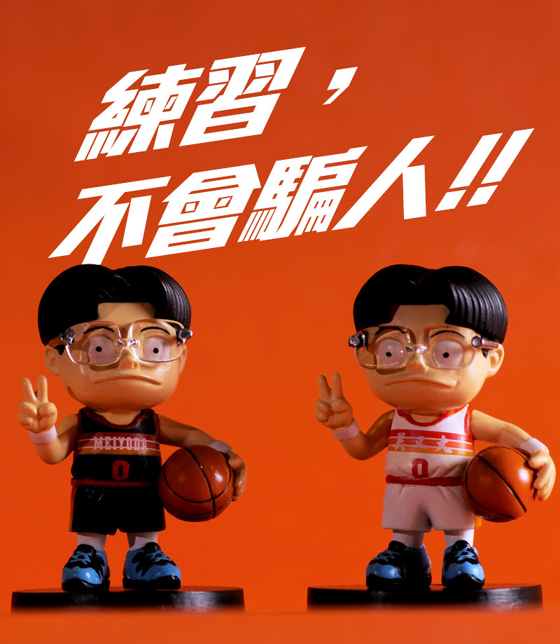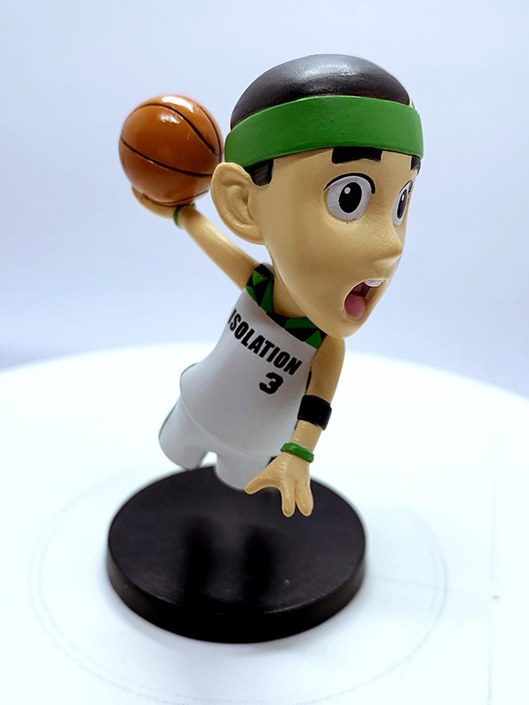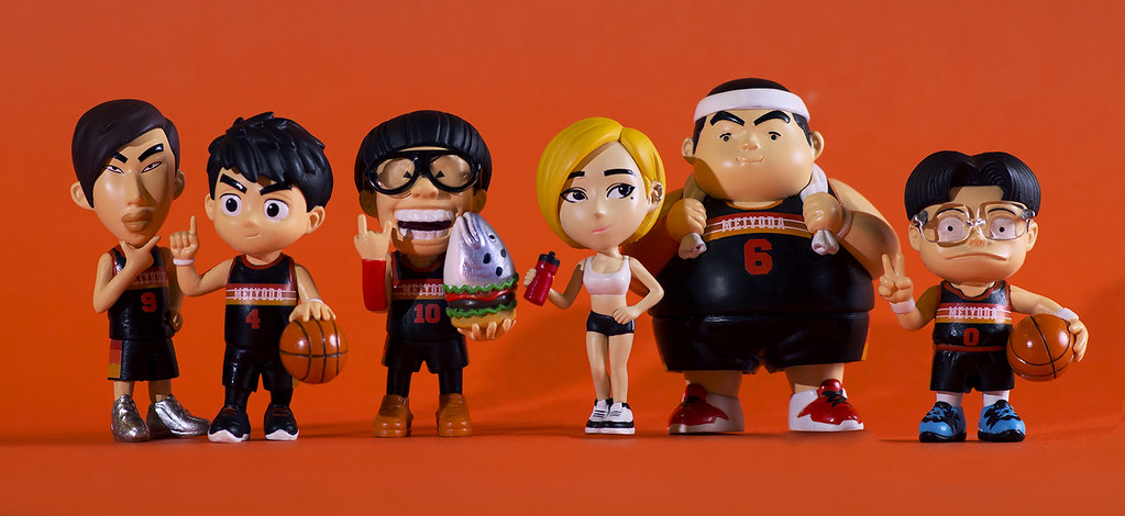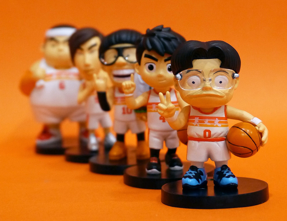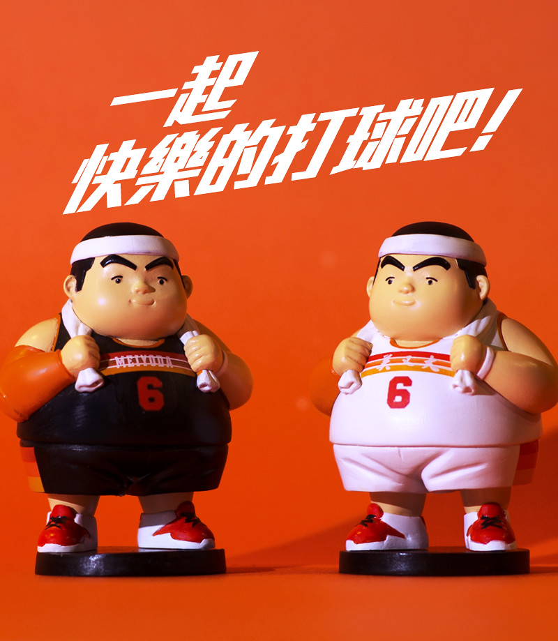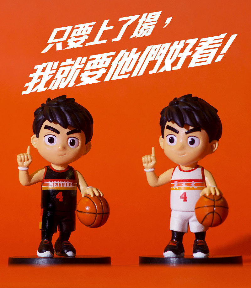 直接跳過動畫化的階段,挑戰高難度的角色立體化PVC公仔,與長期開發玩具公仔及文創、運動周邊商品的威宇創意整合工作室合作,將《宅男打籃球》的美又大團隊人氣角色以6~8公分的尺寸呈現,推出可愛的造型比例,上色與細節都具有質感且討喜的PVC公仔,包含有:周大華、阿基、宗憲、蛙仔、魚頭、星凌、愛姍學姊五位球員加上兩款女性角色,球員們分別有主場與客場套裝兩種款式,另外還有新解鎖的隱藏版角色ISOLATION隊-兔子!