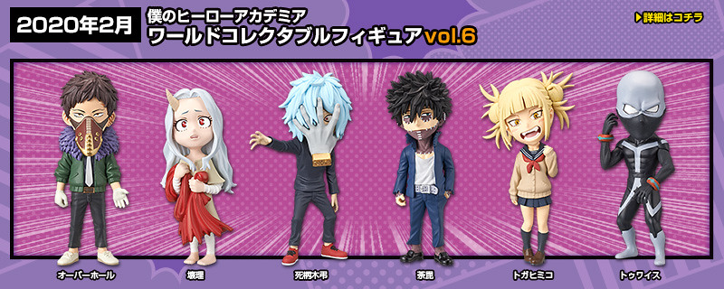 由日本 BANDAI SPIRITS 公司旗下景品品牌 BANPRESTO 發行,將眾多動漫角色 Q 版立體化的「World Collectable Figure(WCF)」系列日前正式發表了來自《我的英雄學院》的最新作,收錄眾多反派角色的「第六彈」登場!預計 2020 年 2 月 11 日發售。