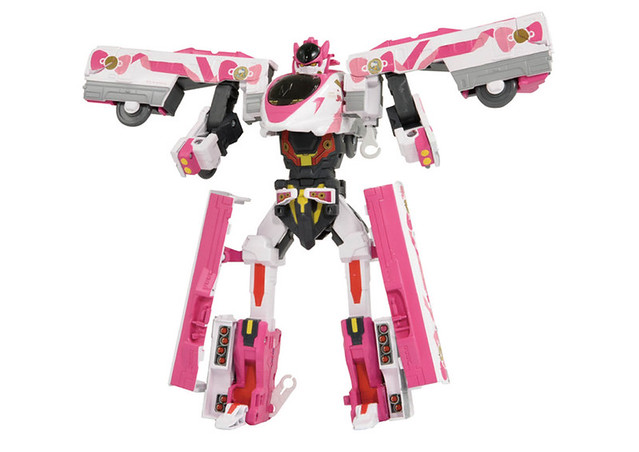 透過變形機構即可將四節車輛組合成兼具可愛與帥氣的機器人「Shinkalion模式」!左手揮舞能讓人幸福的「信號機矛槍」、右手持著讓人欣喜的「導彈盾牌」,還能將頭部零件替換,轉換成熟悉的「Hello Kitty模式」。同時也能運用 Hello Kitty 頭盔與E6、N700A、E7、923 Dr.Yellow 等 DXS 系列商品進行 CROSS 合體!