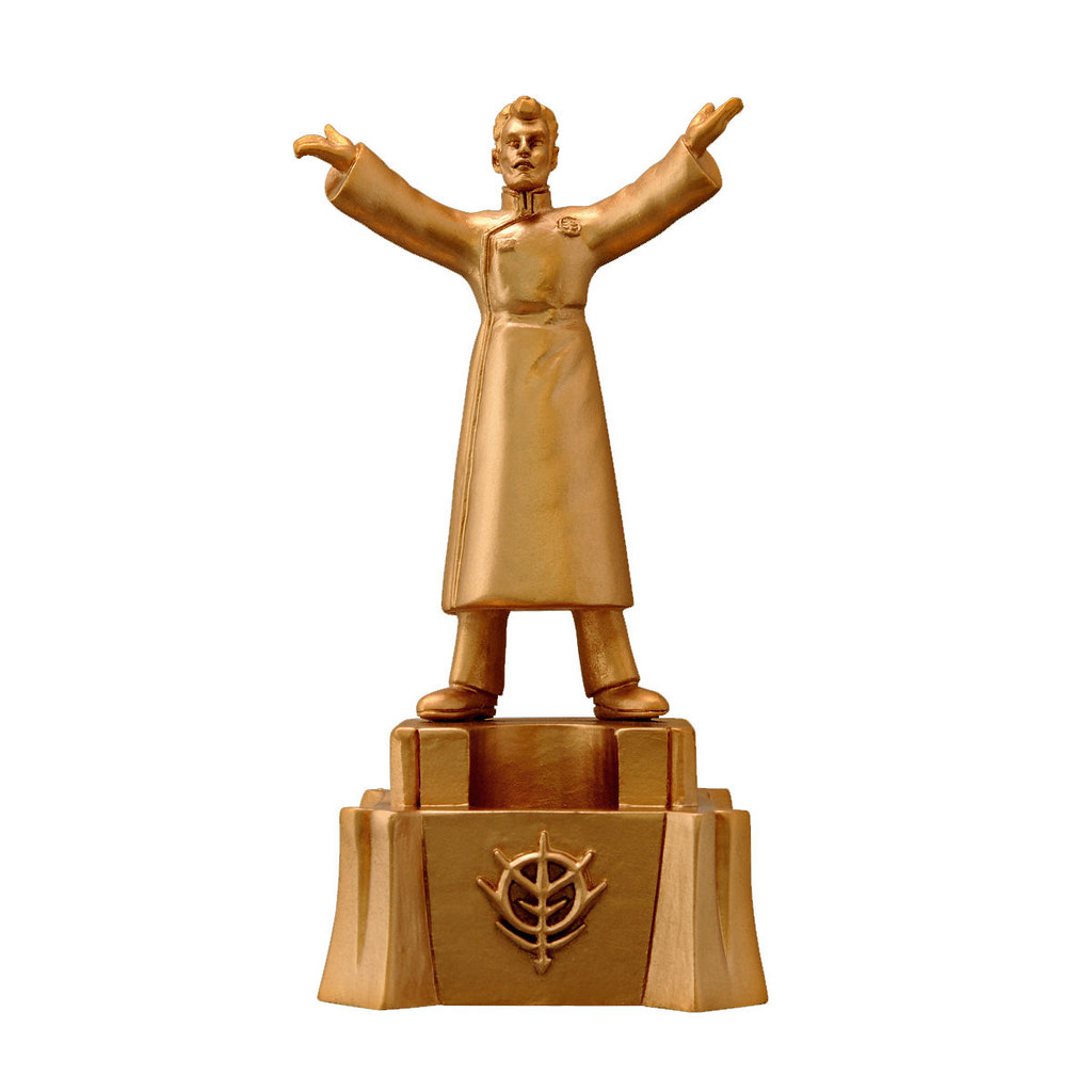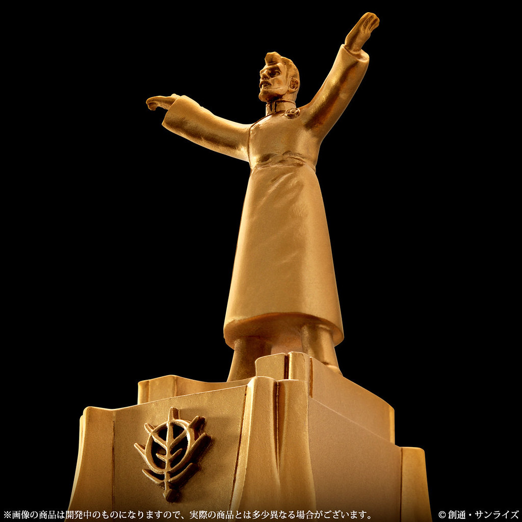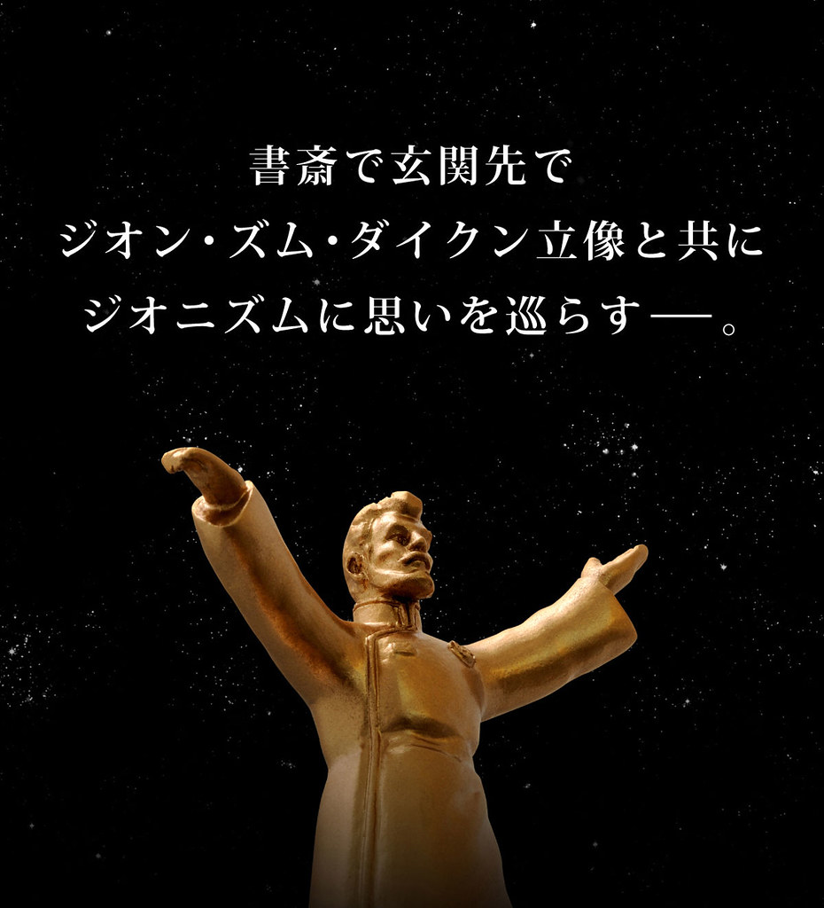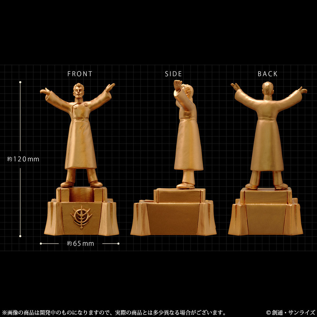 「吉翁.茲姆.戴昆 雕像印鑑架」以吉翁.茲姆.戴昆在慕佐自治共和國國會議事堂前的雕像為設計,重現這位雙手高舉的宇宙世紀最大思想家英姿。整體約為 65 x 120 x 75mm的尺寸,底座可以放置印鑑。擺放在辦公桌、書桌上,除了具有裝飾性,也可供吉翁迷時時膜拜(?)