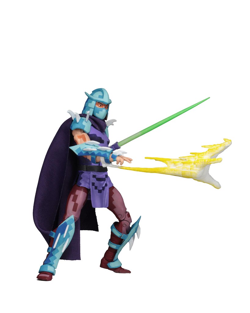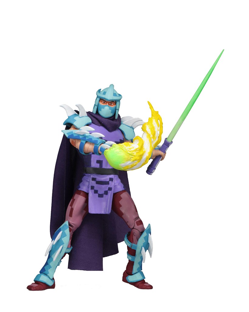 這次的《TMNT: Turtles in Time》可動人偶第二波包含:米開朗基羅(Michelangelo)、拉斐爾(Raphael)、鱷魚人皮頭(暫譯,Leatherhead)跟超級許瑞德(Super Shredder),每一款人偶同樣都附上了招牌的武器或特效件,米開朗基羅的雙節棍、拉斐爾的雙叉,兩人的懸浮滑板,以及皮頭在遊戲裡會瘋狂丟出來的小刀,許瑞德則是擁有光束劍與兩種火焰特效!每款角色高約 17.7 公分,高度還原電玩設定的像素風格塗裝更是令人懷念。
