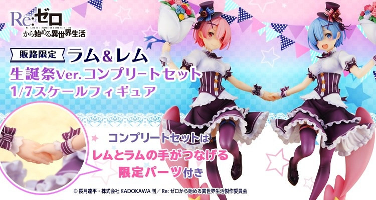 日本角川(KADOKAWA)旗下的玩具品牌「KDcolle(KADOKAWA Collection)將推出《Re:從零開始的異世界生活》主題的「拉姆&雷姆 生誕祭Ver. 」現定套組(ラム&レム 生誕祭Ver. コンプリートセット)1/7比例 PVC塗裝完成品,參考售價為日幣 31,600 元,預計將於 2020 年 11 月發售。
