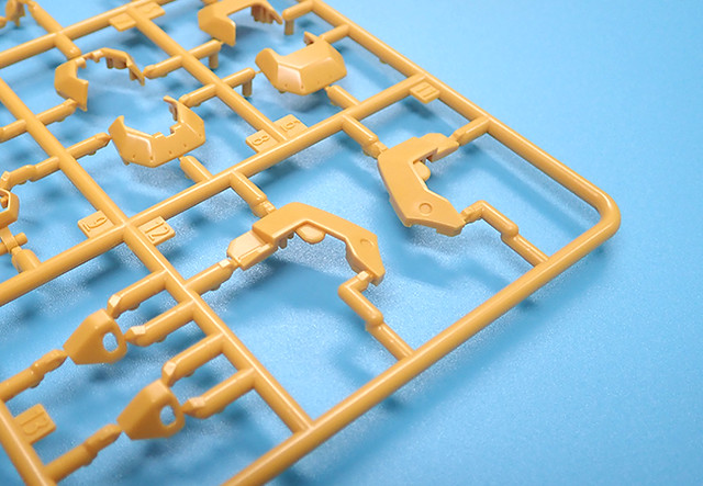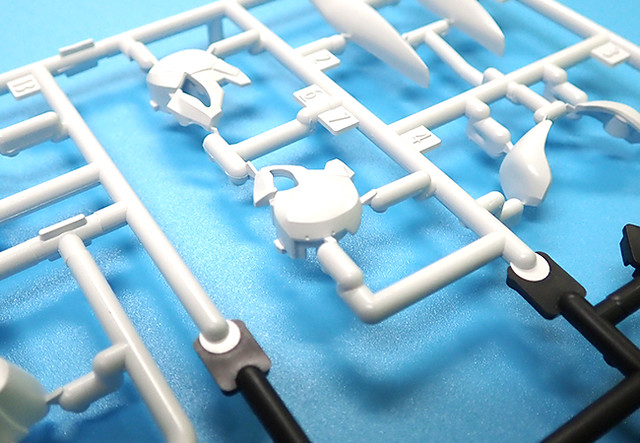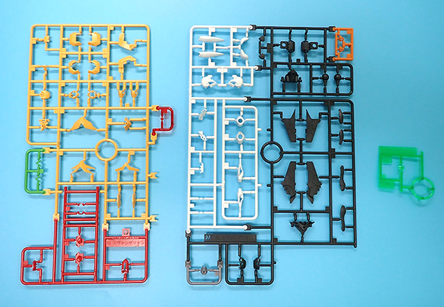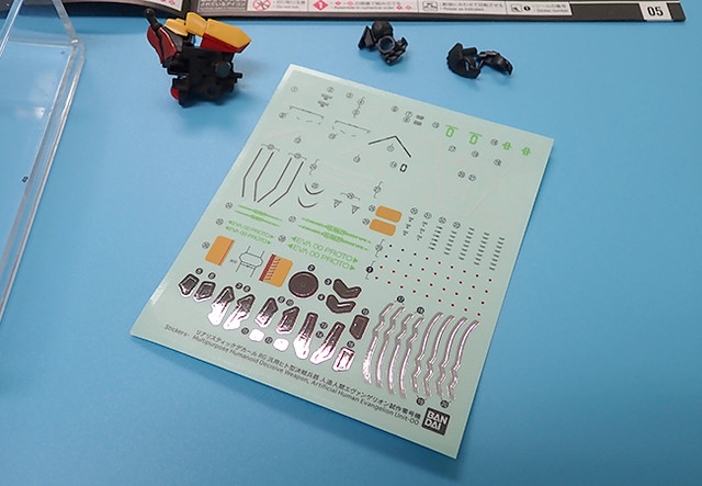 配件包含造型手掌左右各7種、臍帶電纜線、兩款高振動粒子刀、電磁步槍、試作零號機(改)的肩膀武裝收納箱零件,以及 RG 系列特色、讓細節更具金屬質感、寫實風格的 REALISTIC 貼紙。