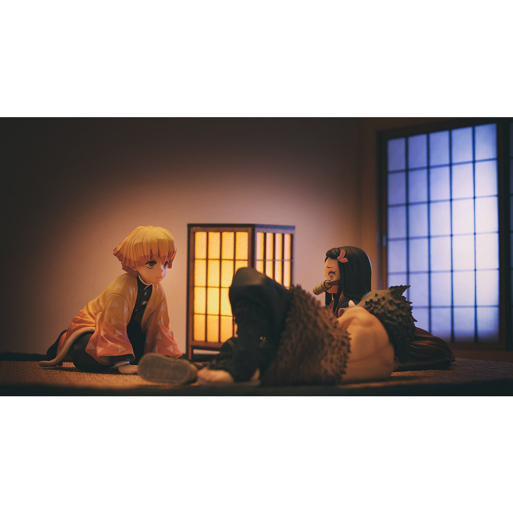 「掌中的善逸君」將善逸化為雙手手掌中的尺寸,僅約7公分的大小,造型卻絲毫不馬虎,制服上披著三角形圖案的黃色羽織與金色短髮的漸層塗裝都相當精緻。無論是捧在手心或是與前作的禰豆子醬、伊之助君共同擺放都相當可愛!