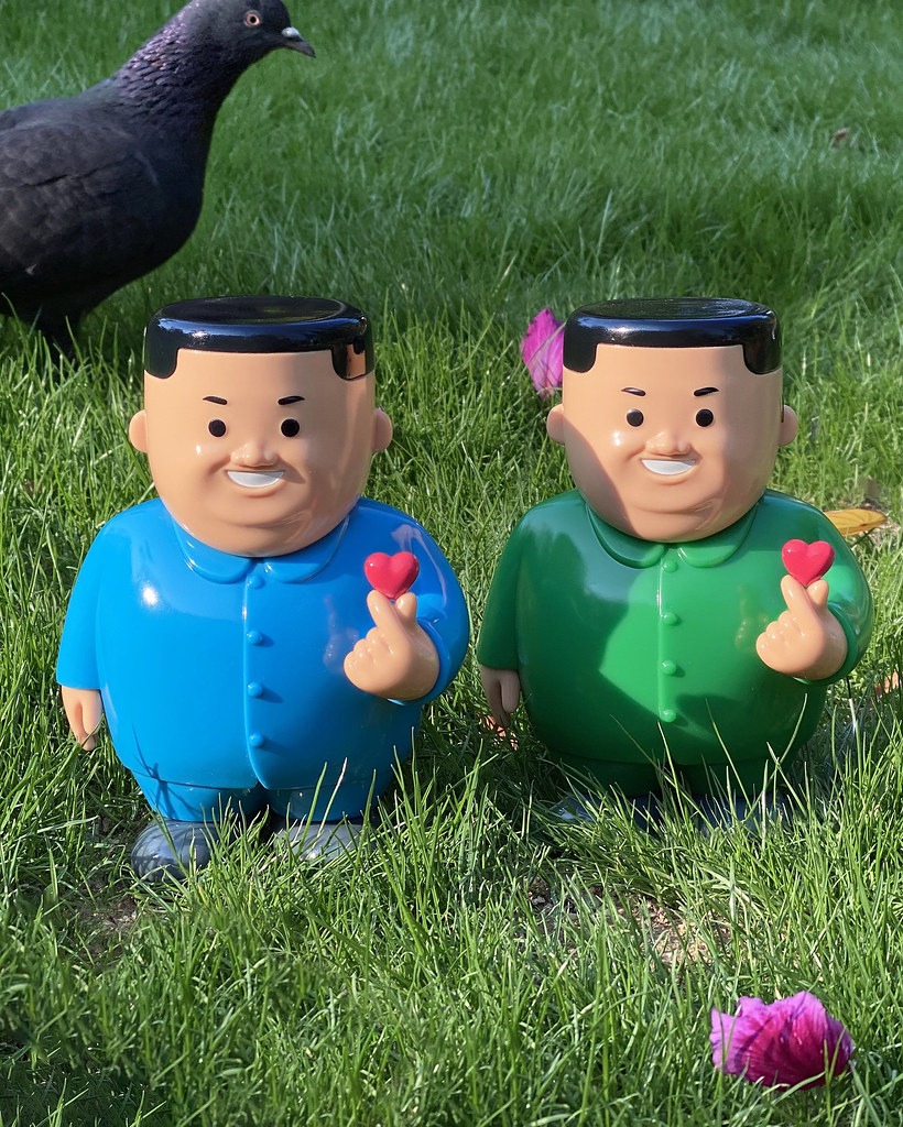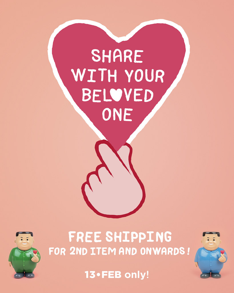 「K-LOVE」搪膠公仔⾸次同時發佈藍⾊及綠⾊版,在情人節限定登場。尺寸為 6.7 吋,每隻售價為港幣1,560|美⾦199,每款公仔腳底印有藝術家簽名,讓粉絲們與摯愛⼀起珍藏「K-LOVE」。開售⽇期為 2020 年 2 ⽉ 13 ⽇⾹港時間上午 10 時起,於「DING DONG宅配便」全球獨家發售。