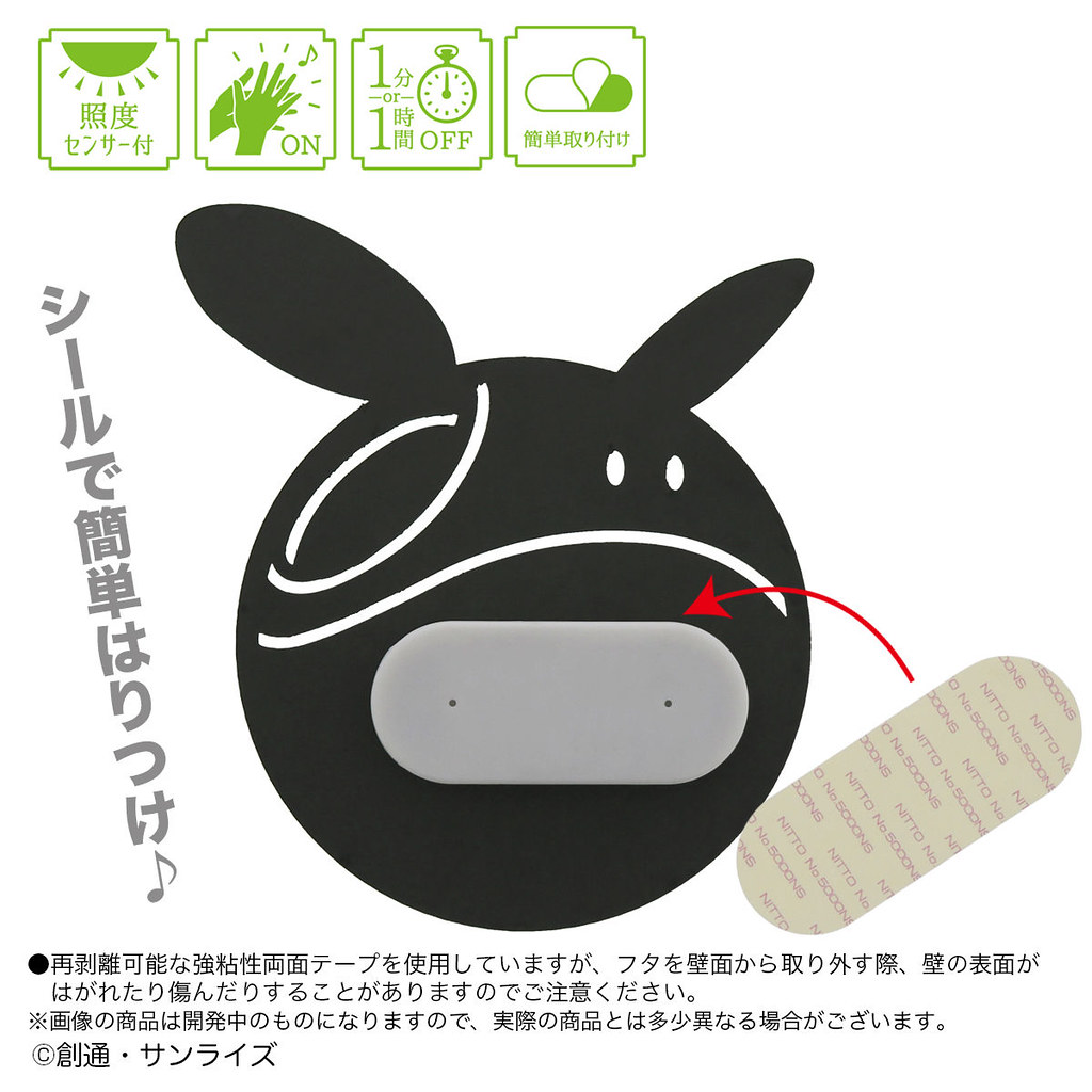 內建的感應功能,在有輕微的噪音或振動時,燈光便會自動亮起,有 1 分鐘或 1 小時後自動關閉的兩款模式設定,因此不必擔心忘記關閉。有如剪影般的可愛燈光,或許可以在漆黑的夜裡增添一點樂趣!