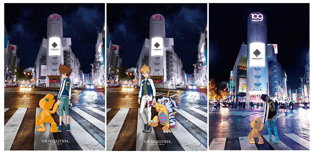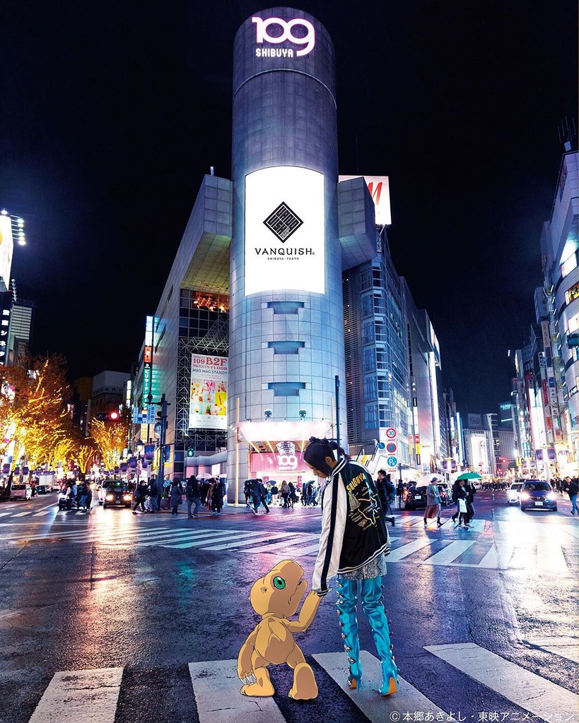 以澀谷知名的實景 Shibuya 109 三叉路口為主視覺,設計了主角八神太一、亞古獸、加布獸、石田大和,以及亞古獸跟史上首位澀谷系虛擬模特兒 Virtual Gal- AoiPrism (葵プリズム)手牽手的視覺圖,共3款。