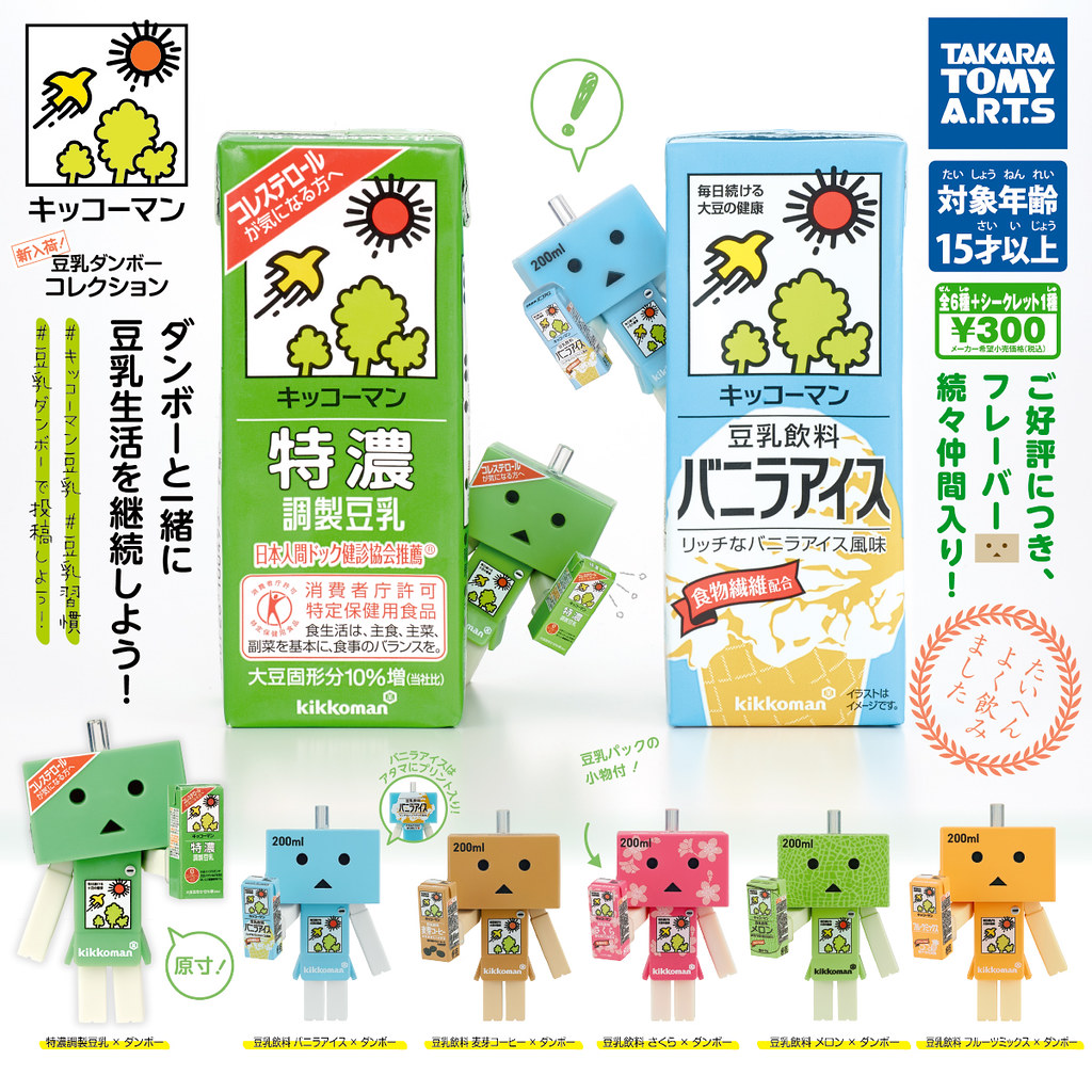 知名日廠 Takara Tomy(株式会社タカラトミーアーツ)旗下暢銷熱賣的轉蛋品牌 T- ARTS,將推出人氣漫畫《四葉妹妹》當中的角色-紙箱人「阿楞」(ダンボー)與日本國民飲料「Kikkoman 龜甲萬調製豆乳」合作的「龜甲萬豆乳阿楞」(キッコーマン豆乳 豆乳ダンボーコレクション)轉蛋!一共有六種款式,一轉售價為日幣 300 元,預計將於 2020 年 02 月發售。
