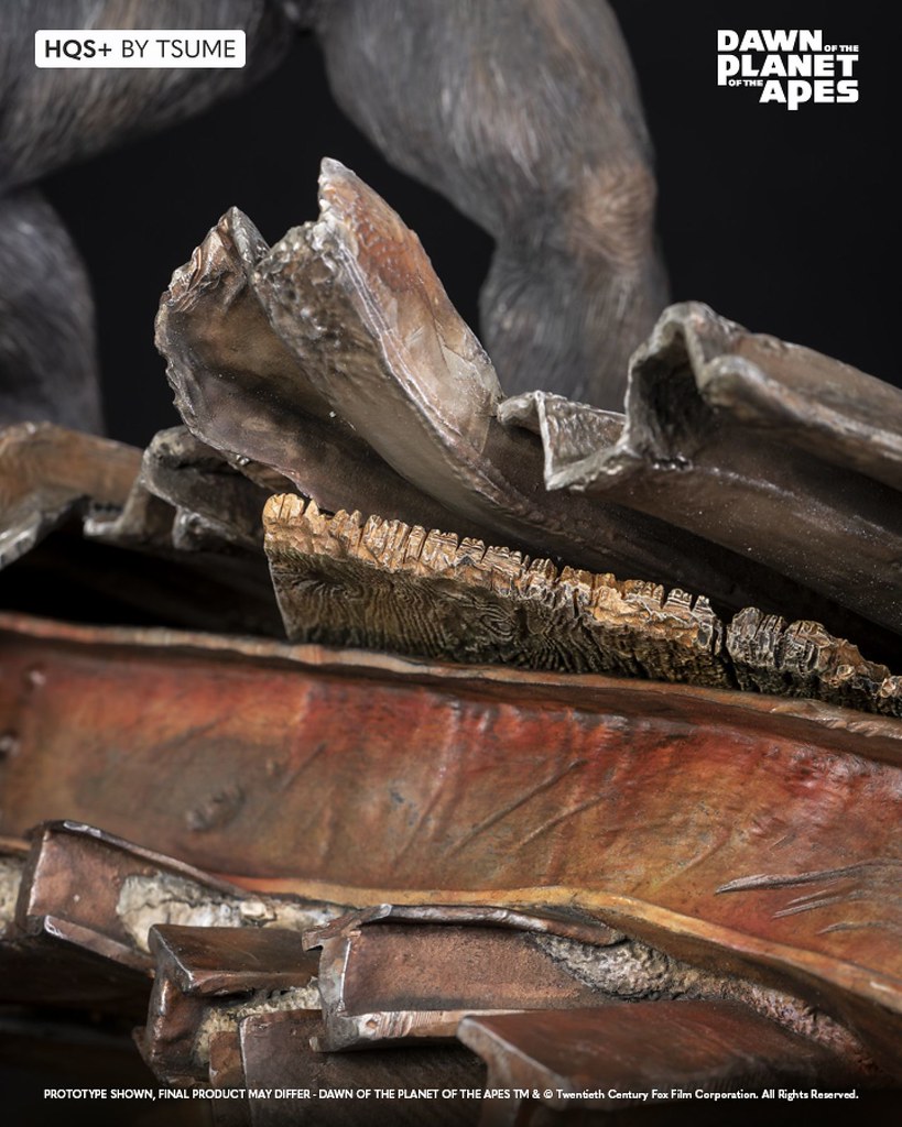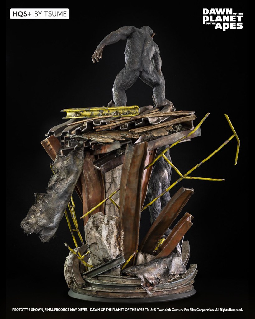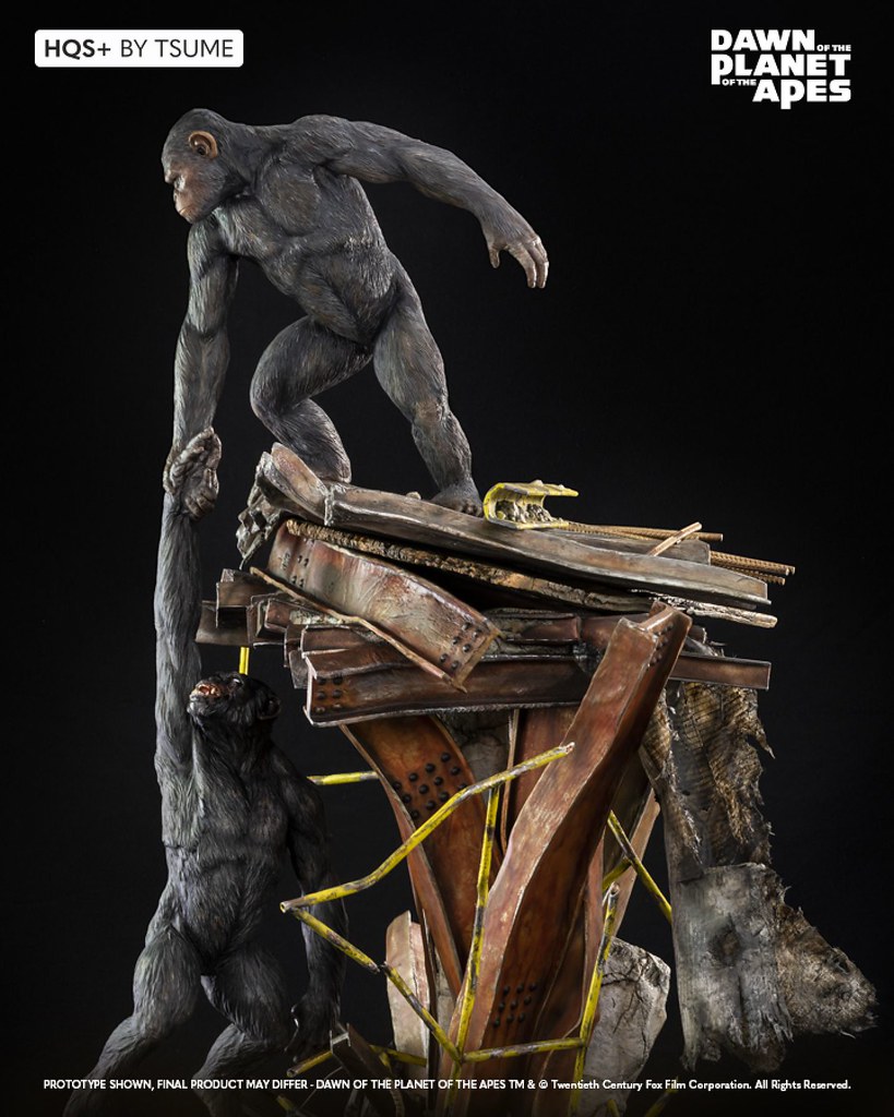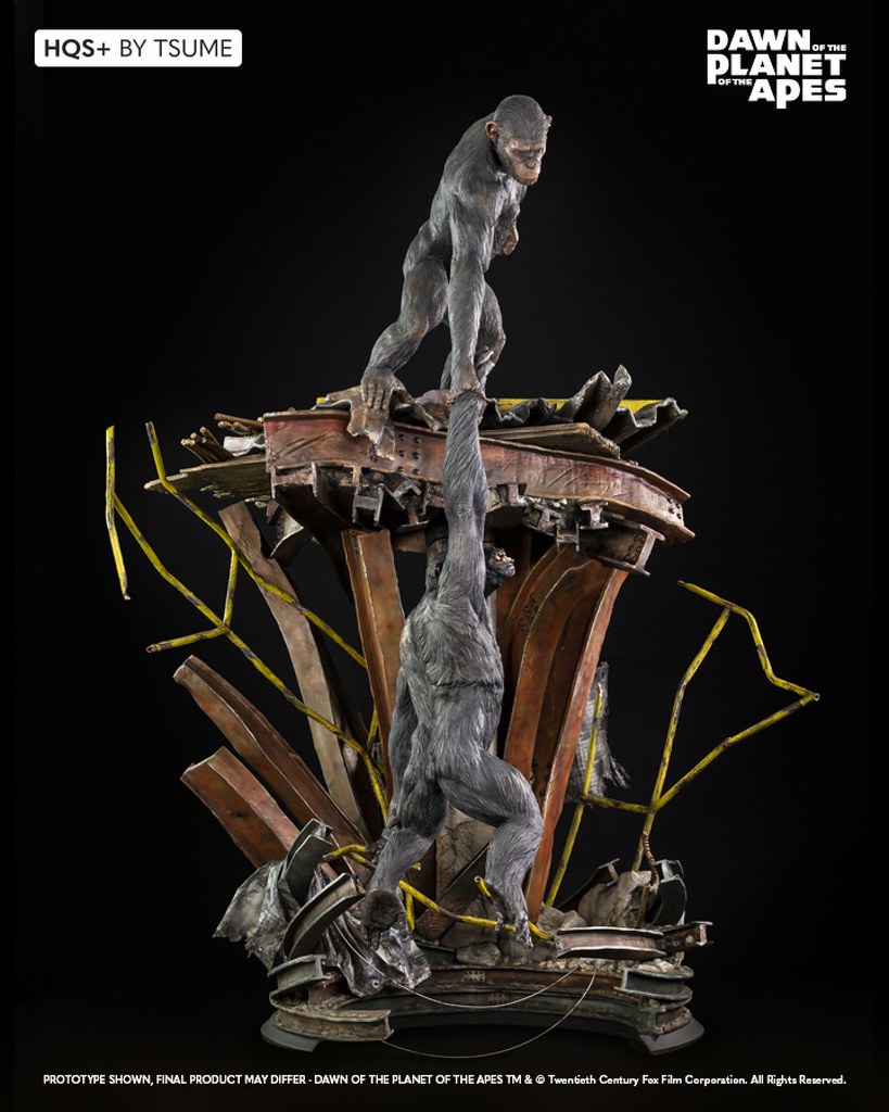 擅長打造電影、動漫角色雕像,以精湛工藝與華麗場景聞名的盧森堡頂尖雕像團隊 Tsume-Art,將推出以《猩球崛起:黎明的進擊》為設計的新作:「猩猩不會自相殘殺」(Ape Not Kill Ape)1/5比例場景雕像,參考售價為 899 歐元,目前已開放預購,預計將於 2021年下半年發售。