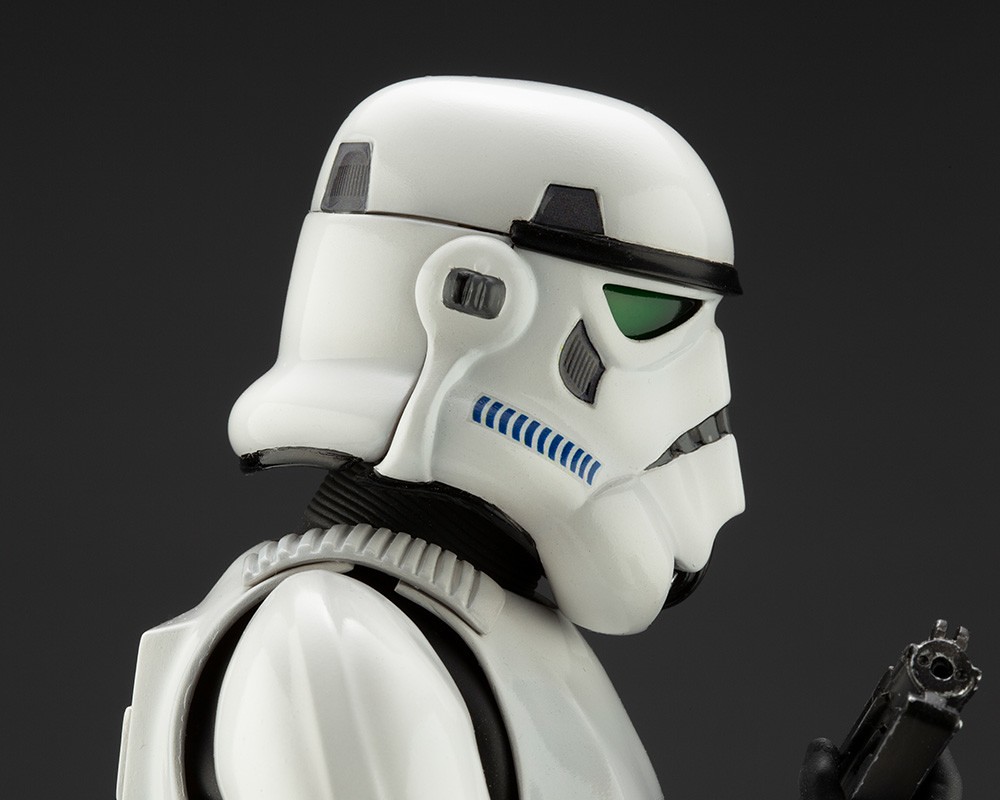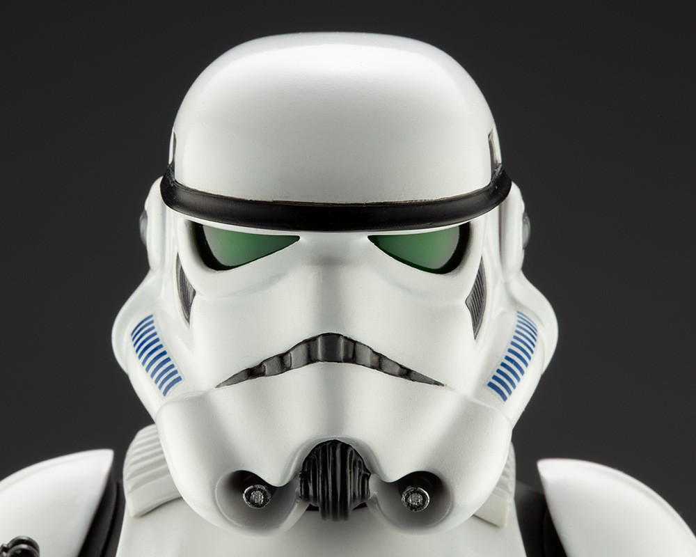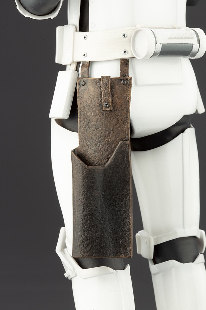 「ARTFX 帝國風暴兵 曙光乍現版」高約 27.5 公分,再現了風暴兵手持 E-11 爆能槍的站立姿態,從頭盔、鏡片、全身護甲、武器都精準地刻畫出原設定細節並施以些許做舊,尤其爆能槍上的刮痕相當逼真,槍套部分也以精美塗裝表現出皮革感,值得一提的是本次的風暴兵頭盔是採用演員角色專用的 Hero Suits 的設定製作(替身演員所穿的盔甲為 Stunt Suits,在部分細節與品質上都跟 Hero 版的有所差異)。