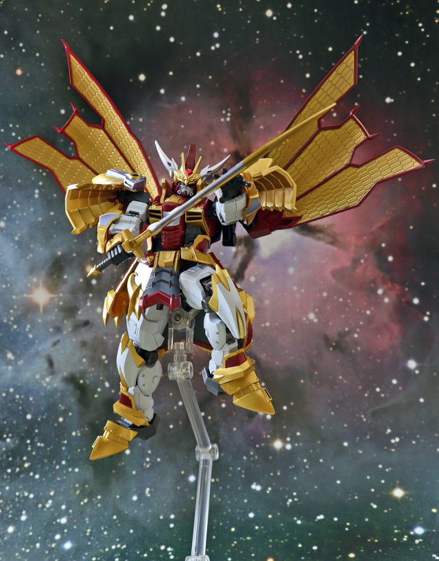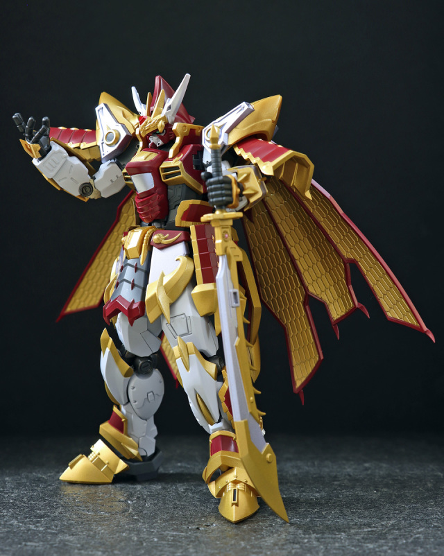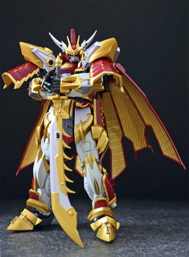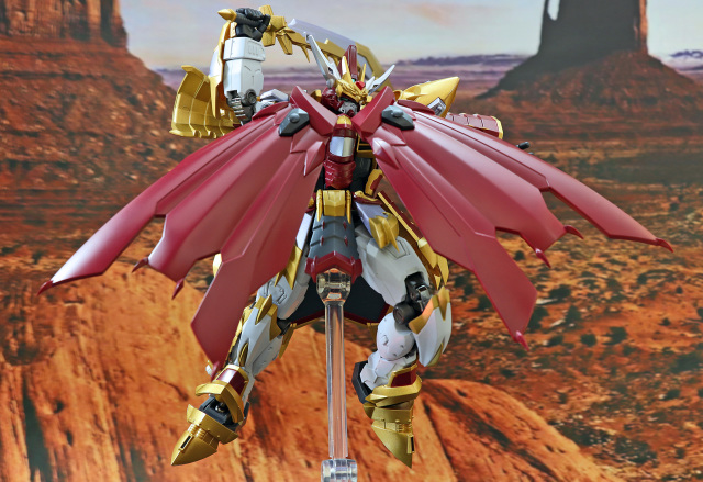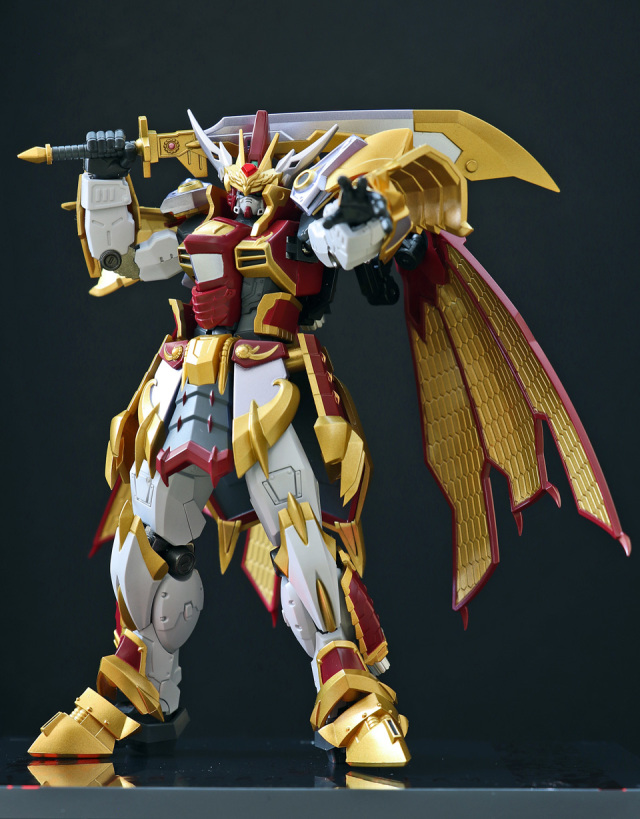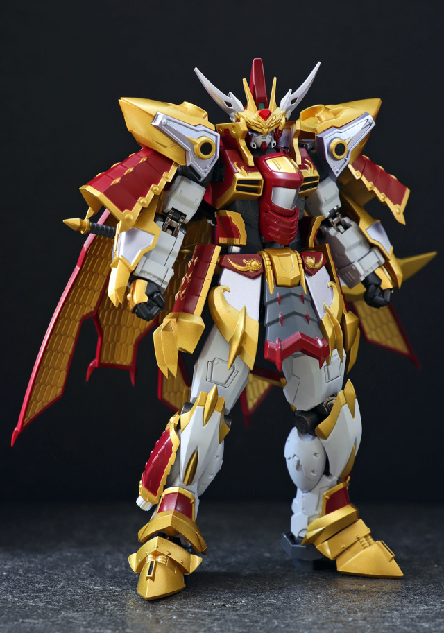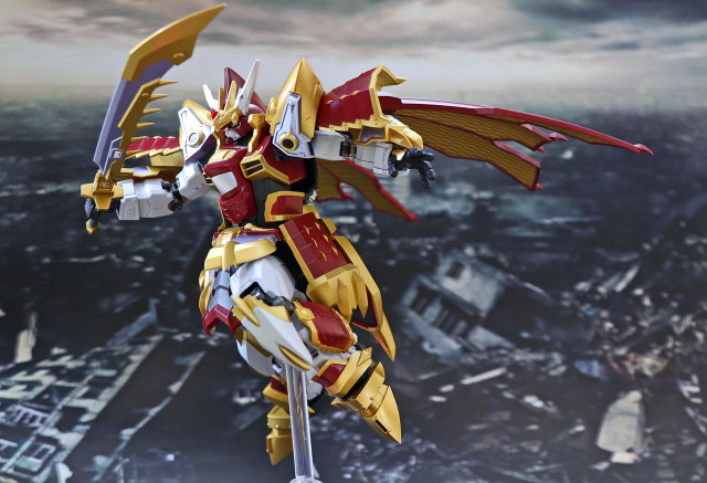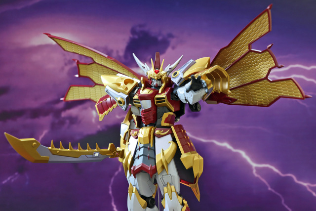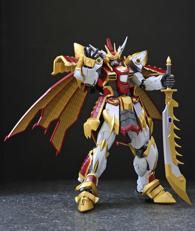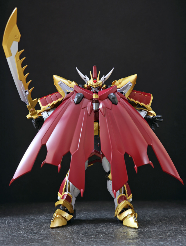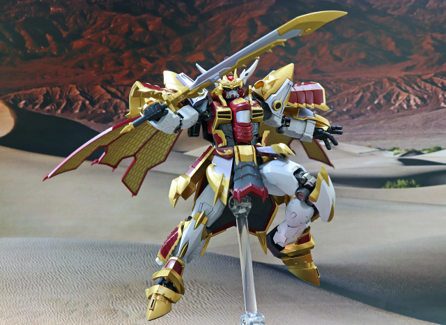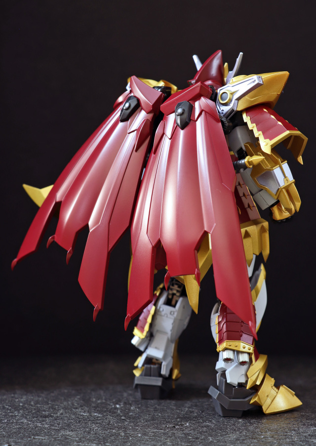 主體全高約 140 mm!先談優點吧!外型是不可挑剔的好,和主題一樣 - 霸!主體由啞白色、金色、啞銀及金屬紅組成,故給人一種高格調的感覺。各關節頗緊,各處的可動性亦在水準以上,外甲對關節的可動性不算有太大影響。部份骨架為合金材質製作而呈現了厚重感。另外其紅色斗篷可任意變換角度,甚至可包覆機身進行防禦,提高其可玩性。